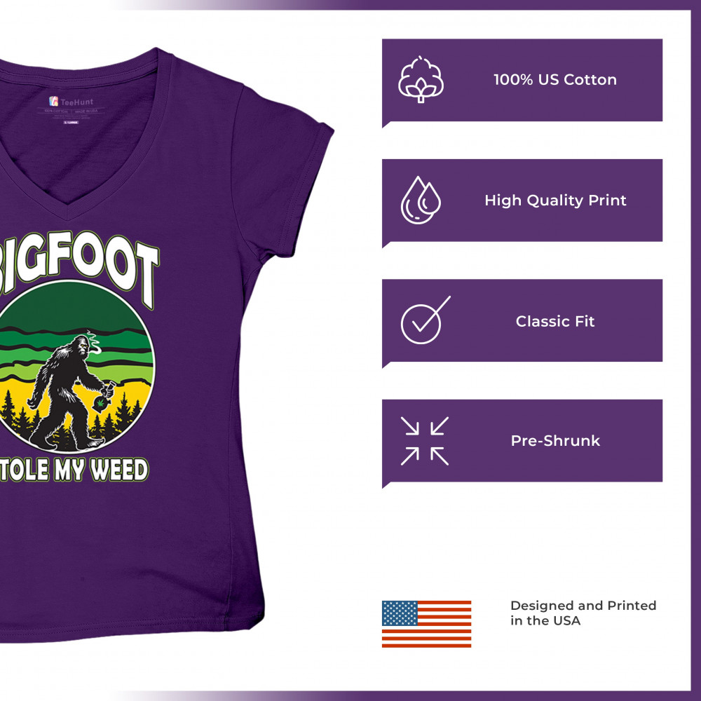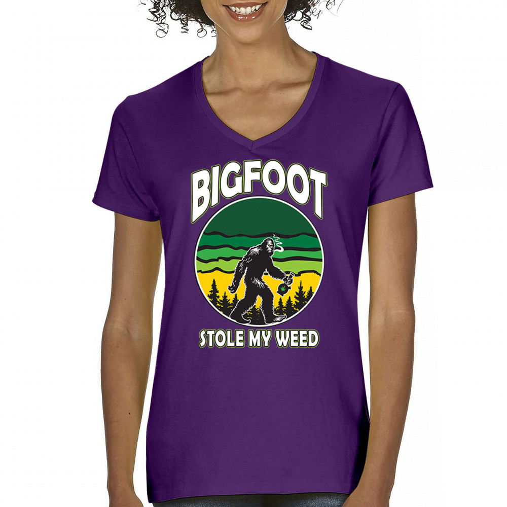 Humorous "Bigfoot Stole My Weed" design featuring Bigfoot and a cannabis leaf. Perfect for fans of Mary Jane, stoned humor, and a chill lifestyle.