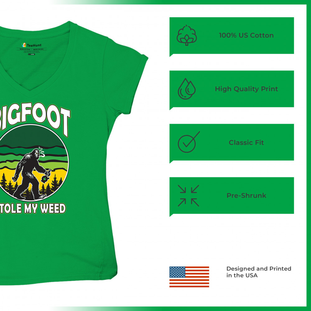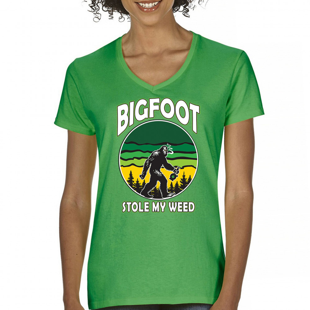Humorous "Bigfoot Stole My Weed" design featuring Bigfoot and a cannabis leaf. Perfect for fans of Mary Jane, stoned humor, and a chill lifestyle.