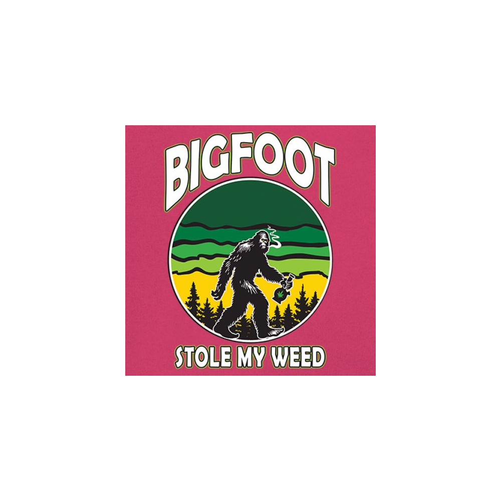 Humorous "Bigfoot Stole My Weed" design featuring Bigfoot and a cannabis leaf. Perfect for fans of Mary Jane, stoned humor, and a chill lifestyle.