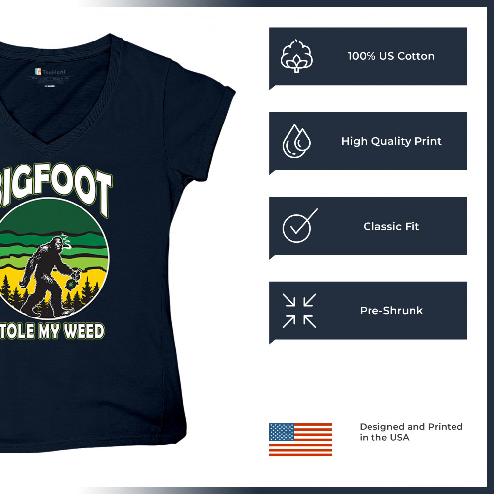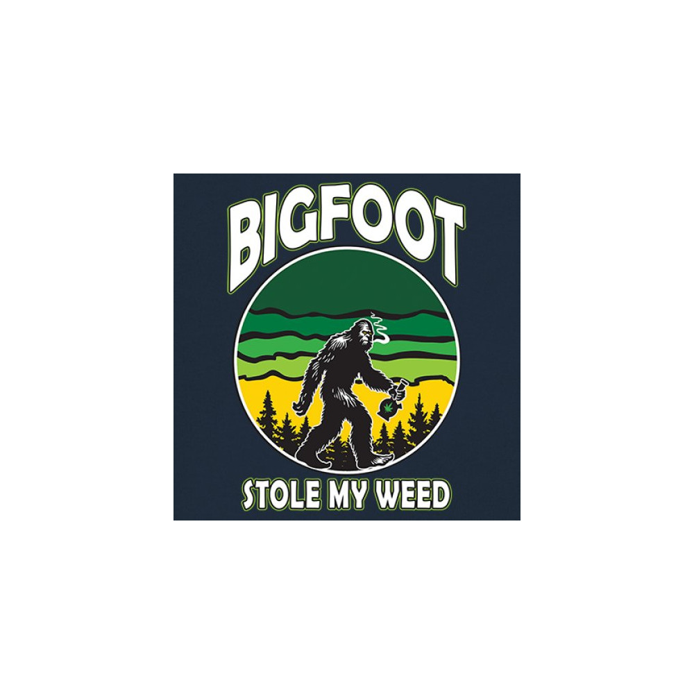 Humorous "Bigfoot Stole My Weed" design featuring Bigfoot and a cannabis leaf. Perfect for fans of Mary Jane, stoned humor, and a chill lifestyle.
