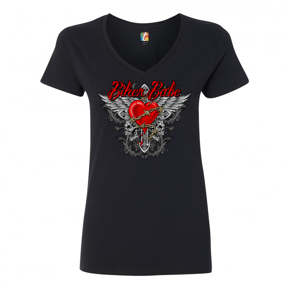 BIKER BABE women's v-neck t-shirt motorcycle chick live to ride tee black