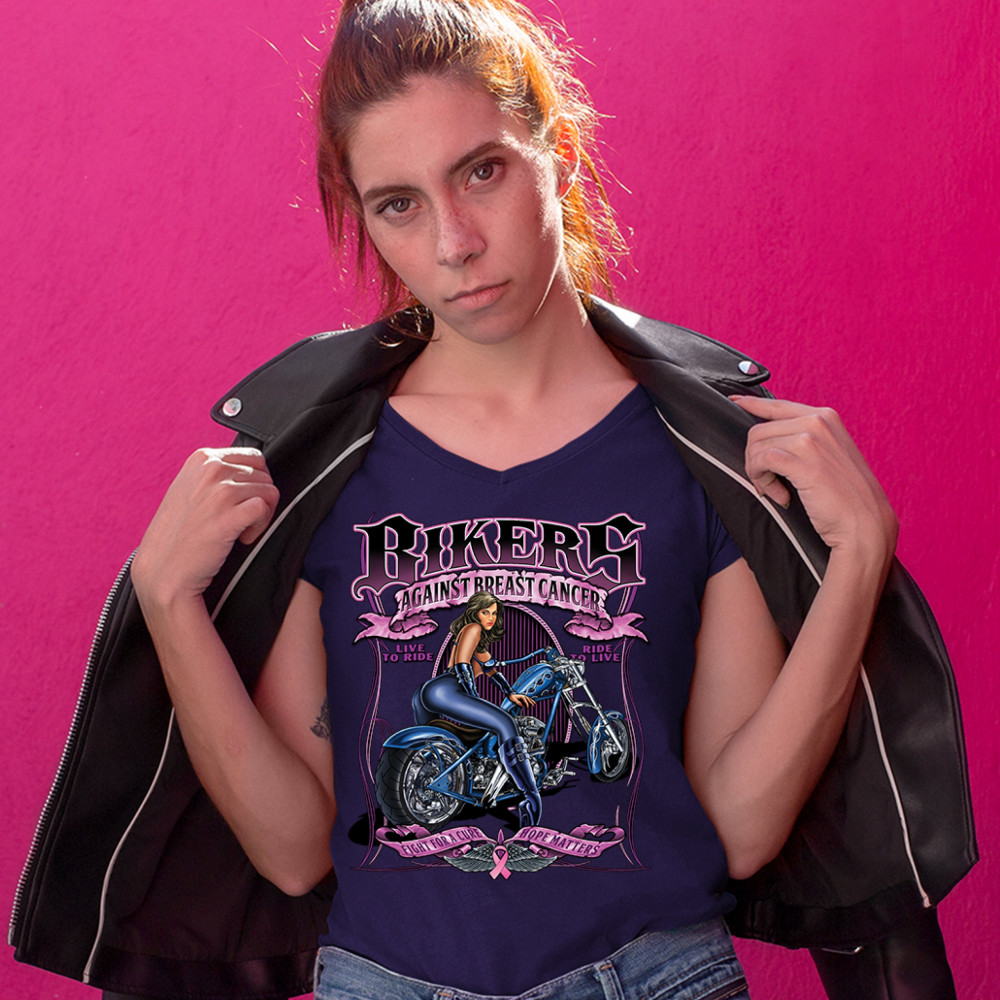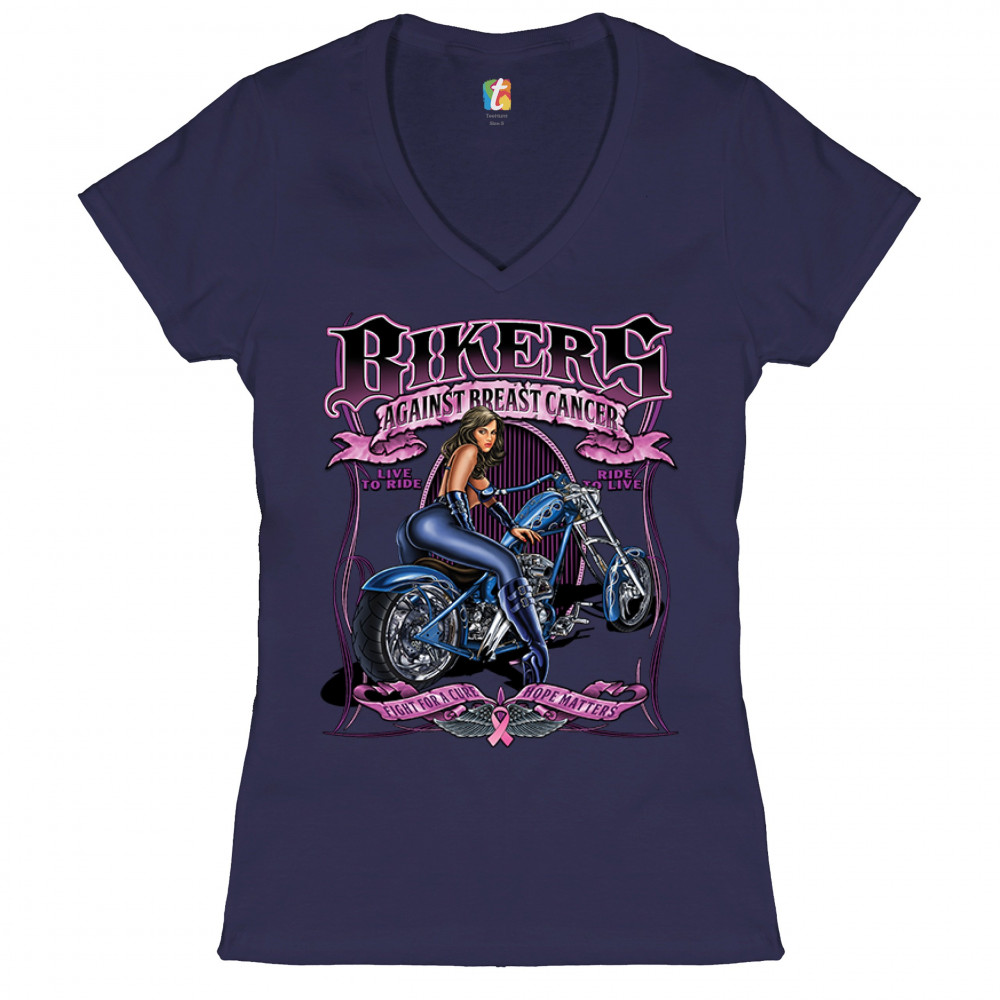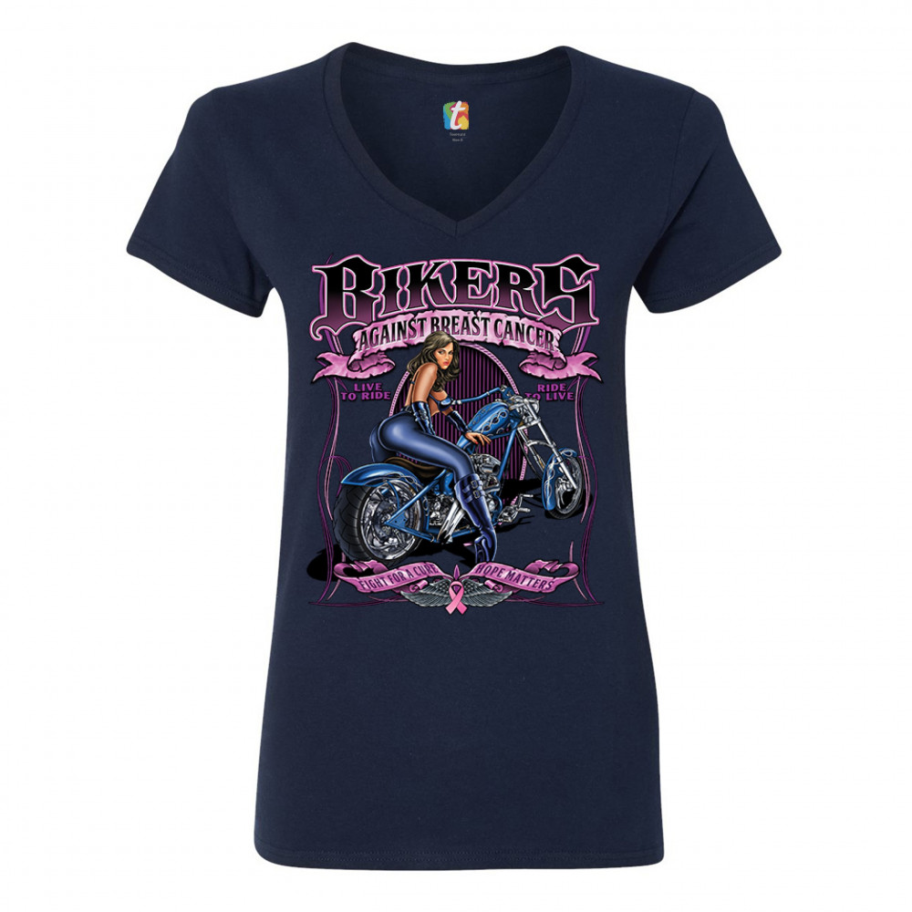 BIKERS AGAINST BREAST CANCER women's v-neck t-shirt fight for a cure hope tee navy blue