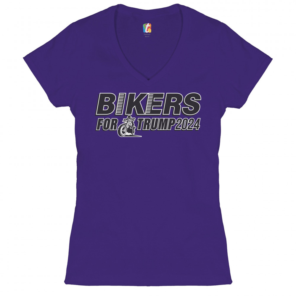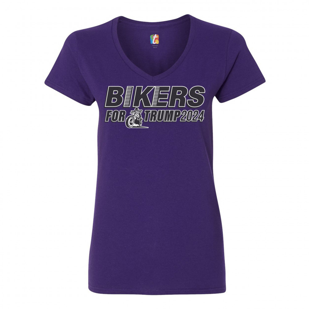 BIKERS FOR TRUMP 2024 women's v-neck t-shirt donald trump motorcycle rally tee purple