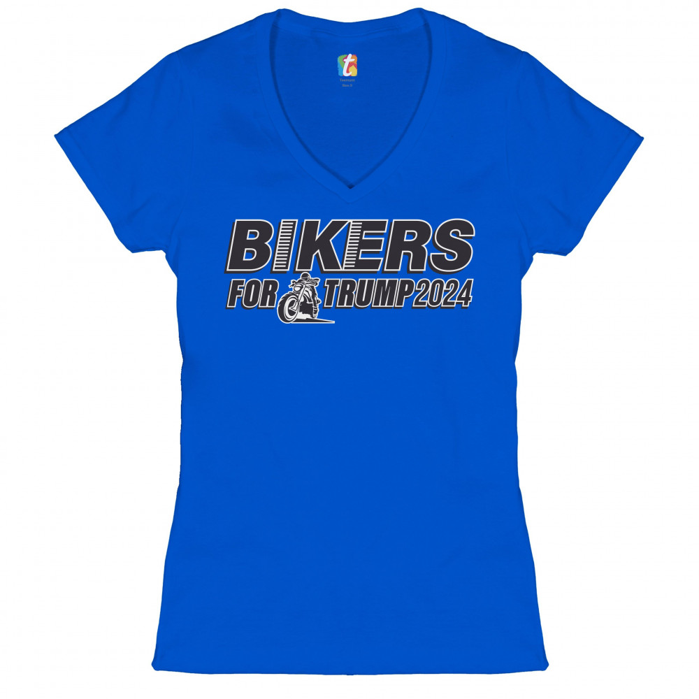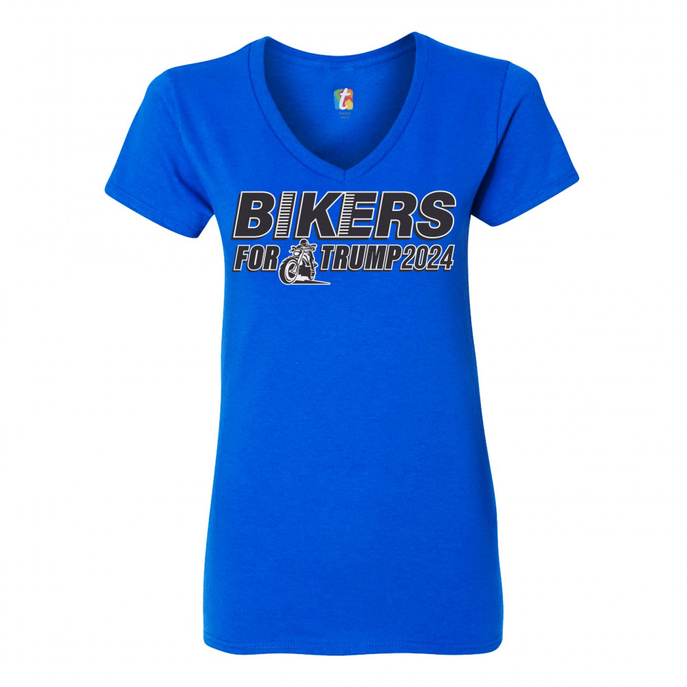 BIKERS FOR TRUMP 2024 women's v-neck t-shirt donald trump motorcycle rally tee royal blue