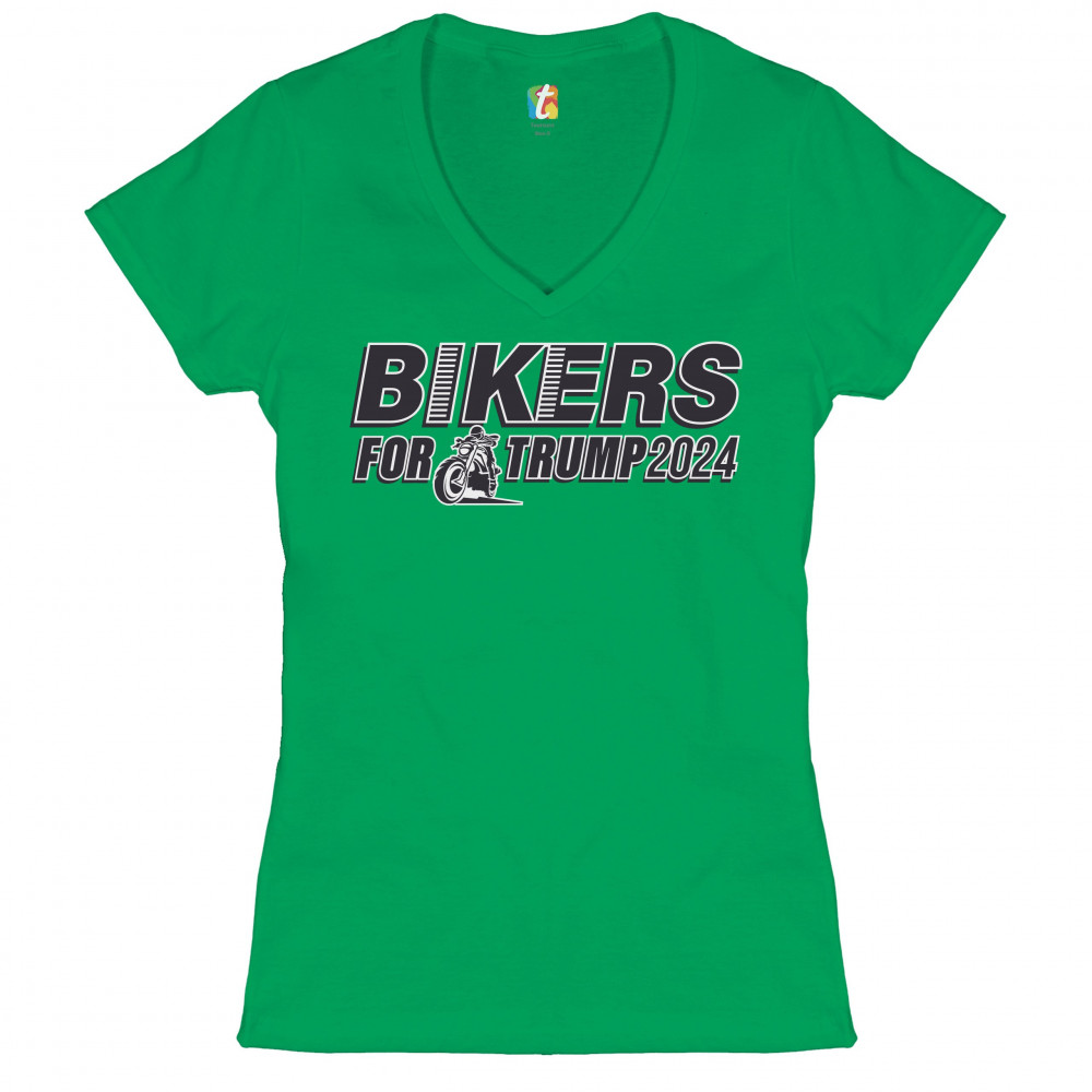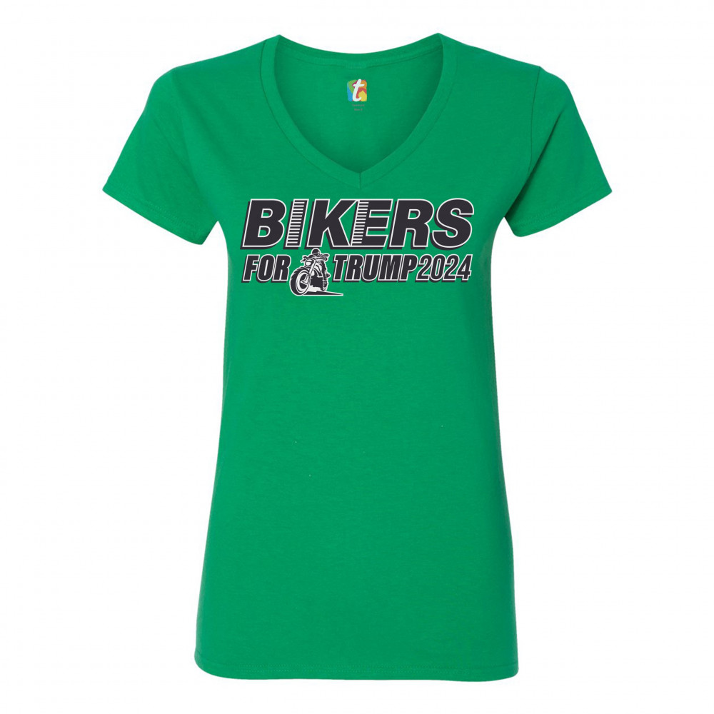 BIKERS FOR TRUMP 2024 women's v-neck t-shirt donald trump motorcycle rally tee green