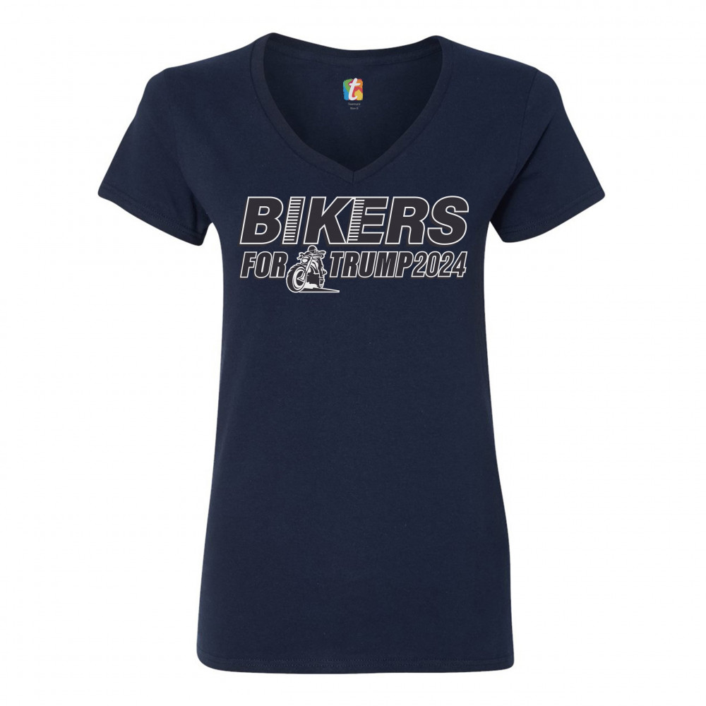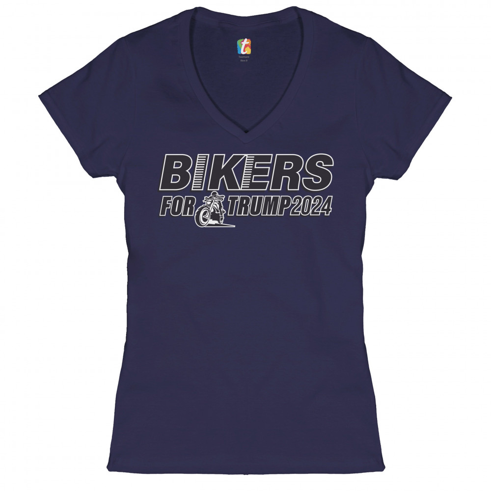 BIKERS FOR TRUMP 2024 women's v-neck t-shirt donald trump motorcycle rally tee navy blue