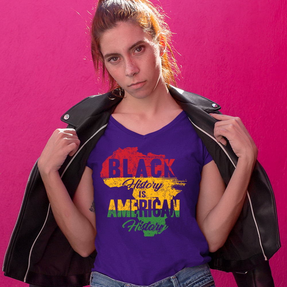 BLACK HISTORY IS AMERICAN HISTORY women's v-neck t-shirt african american tee purple