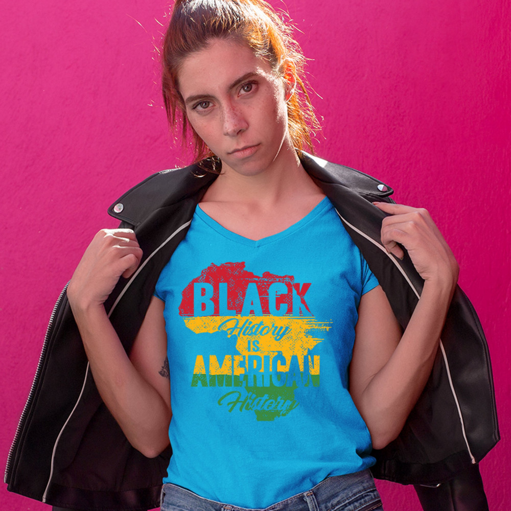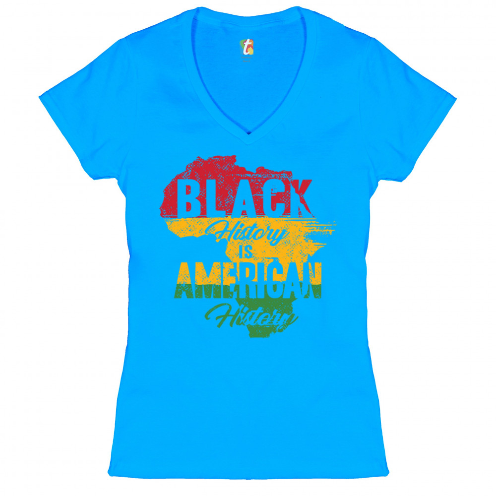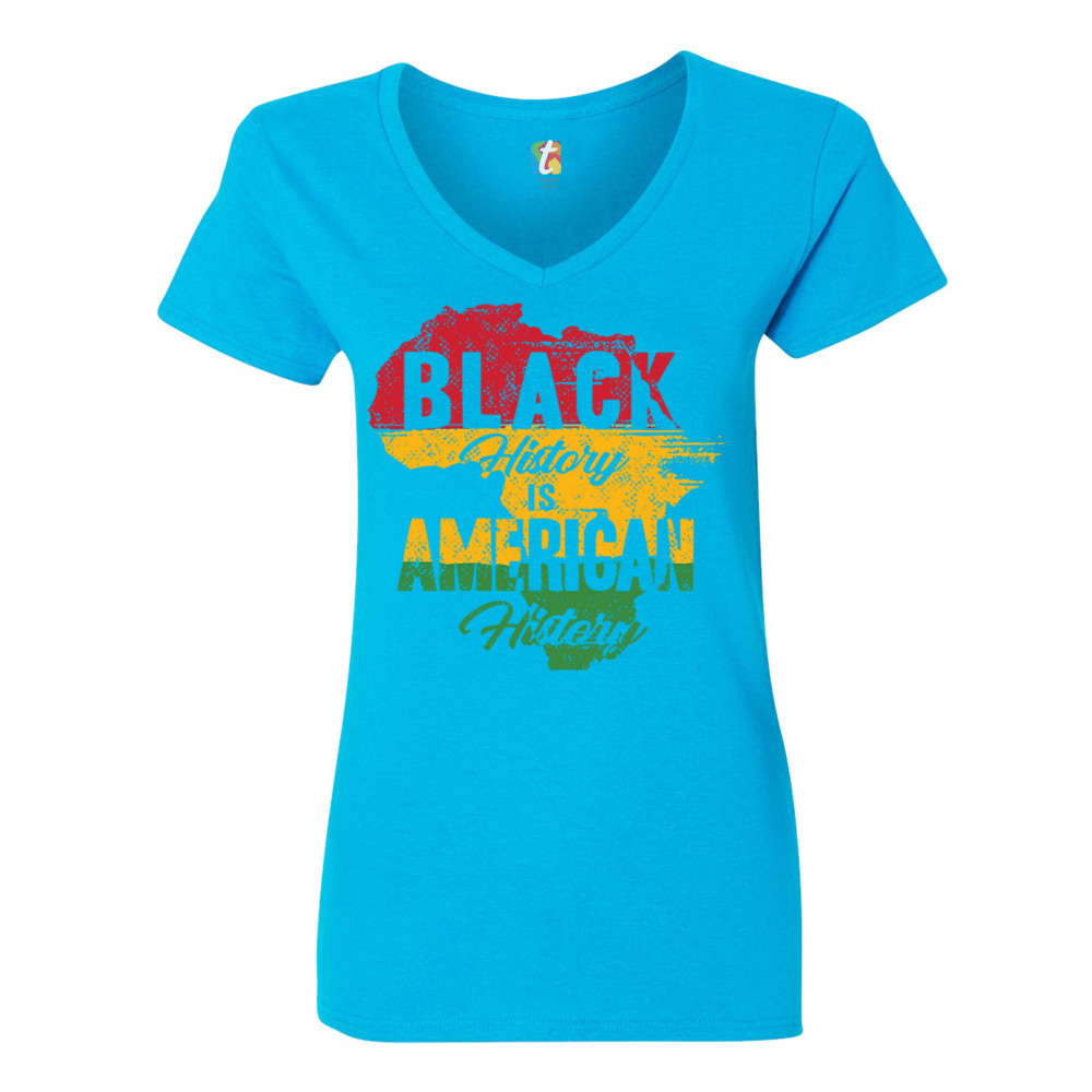 BLACK HISTORY IS AMERICAN HISTORY women's v-neck t-shirt african american tee turquoise
