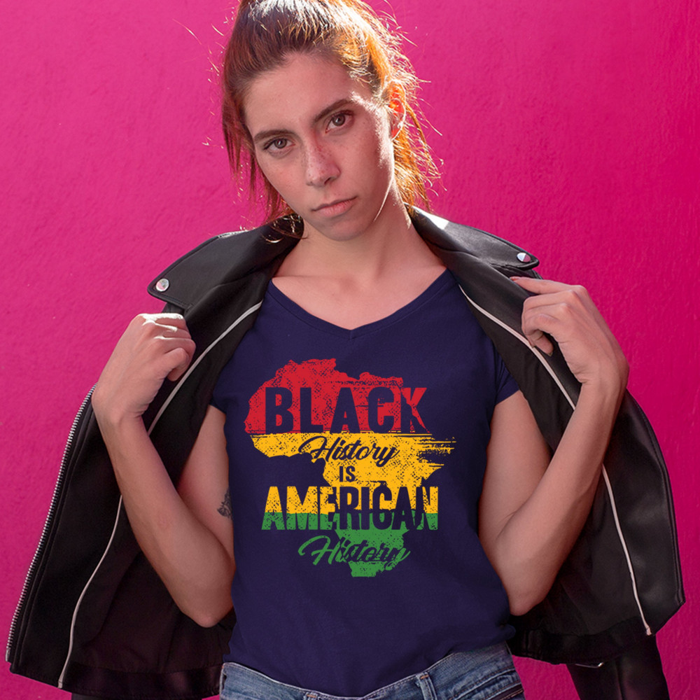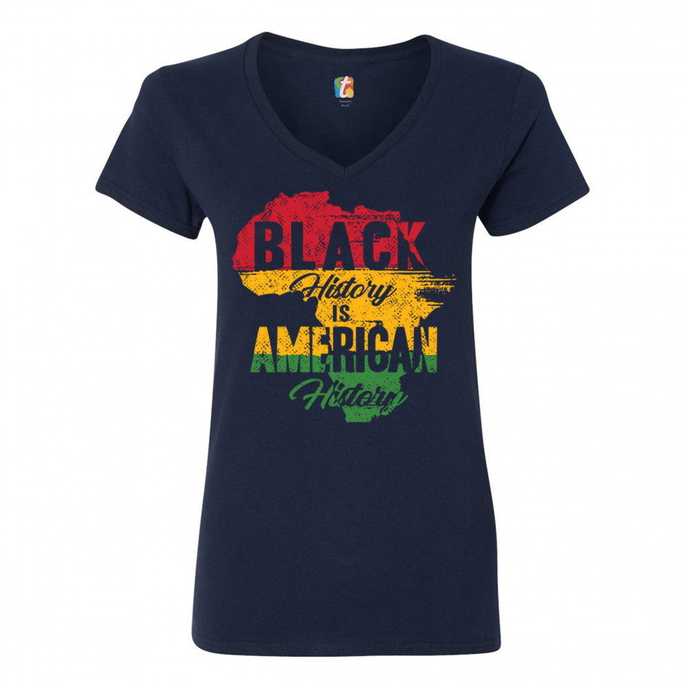 BLACK HISTORY IS AMERICAN HISTORY women's v-neck t-shirt african american tee navy blue
