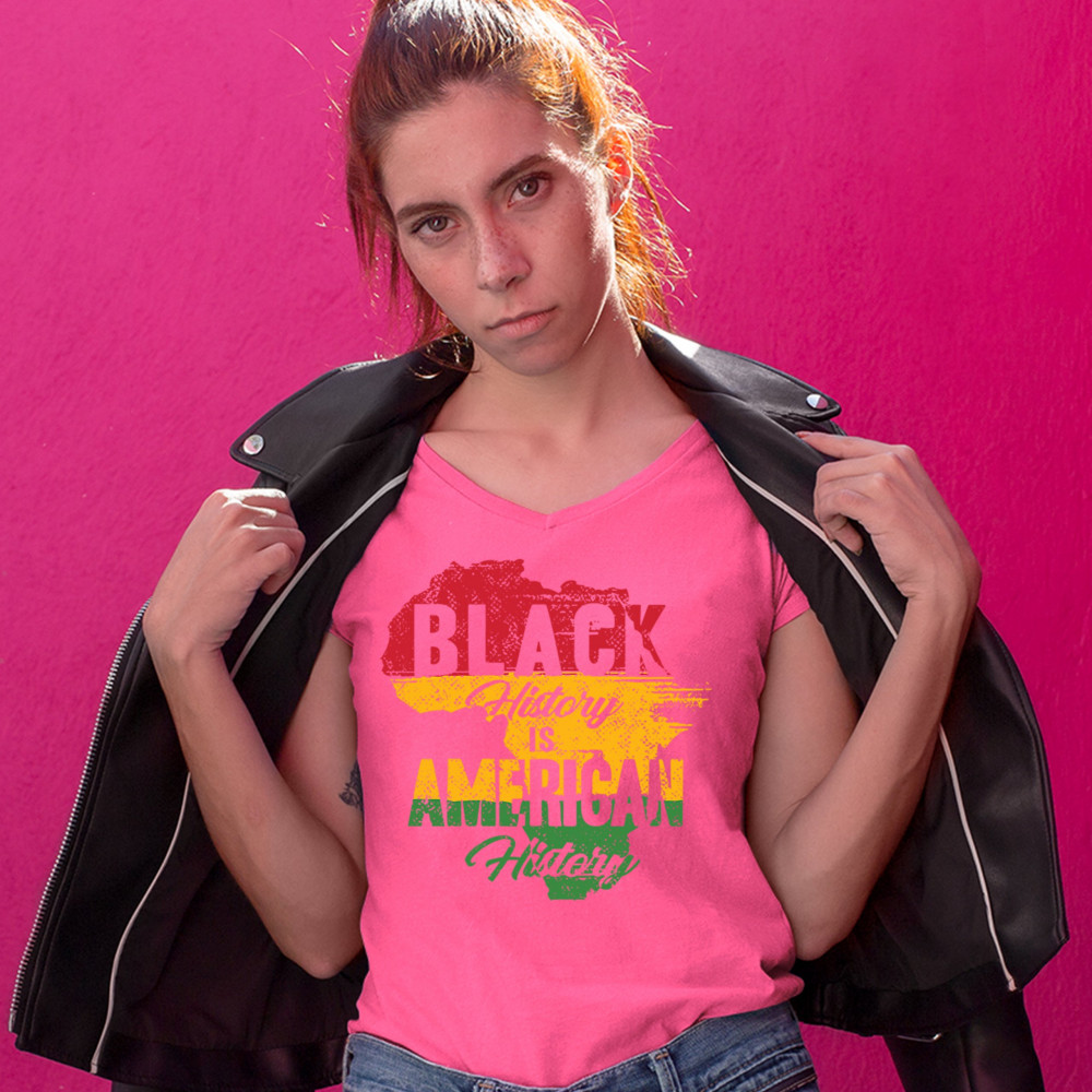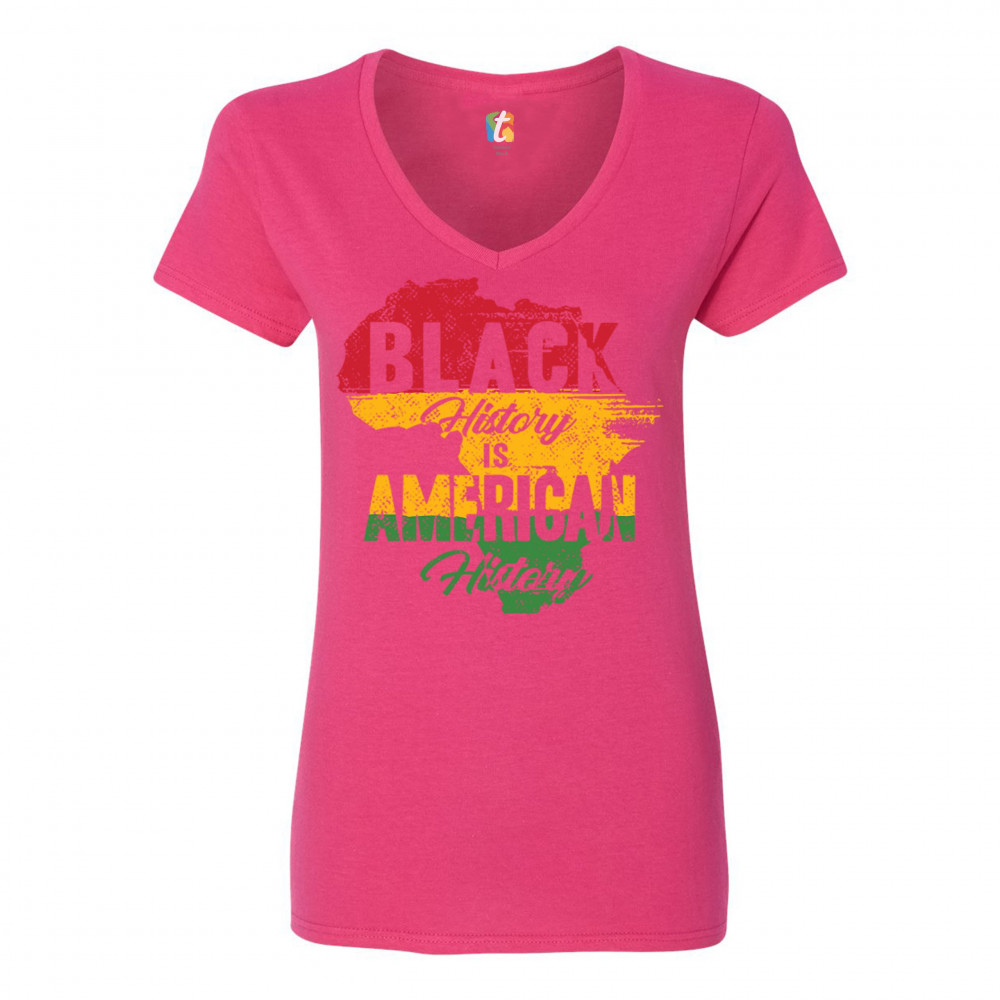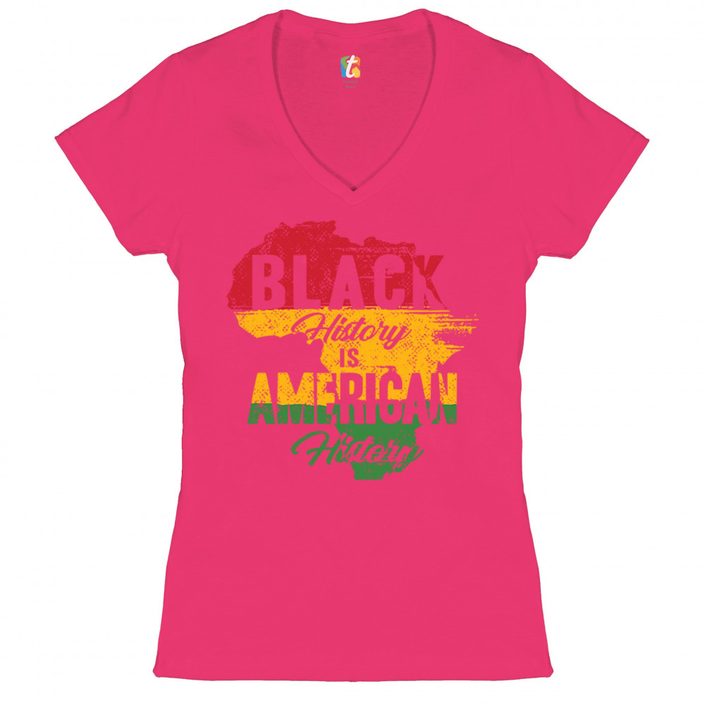 BLACK HISTORY IS AMERICAN HISTORY women's v-neck t-shirt african american tee pink