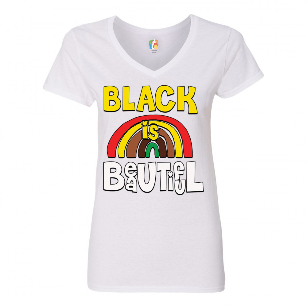 BLACK IS BEAUTIFUL women's v-neck t-shirt african american black pride tee white