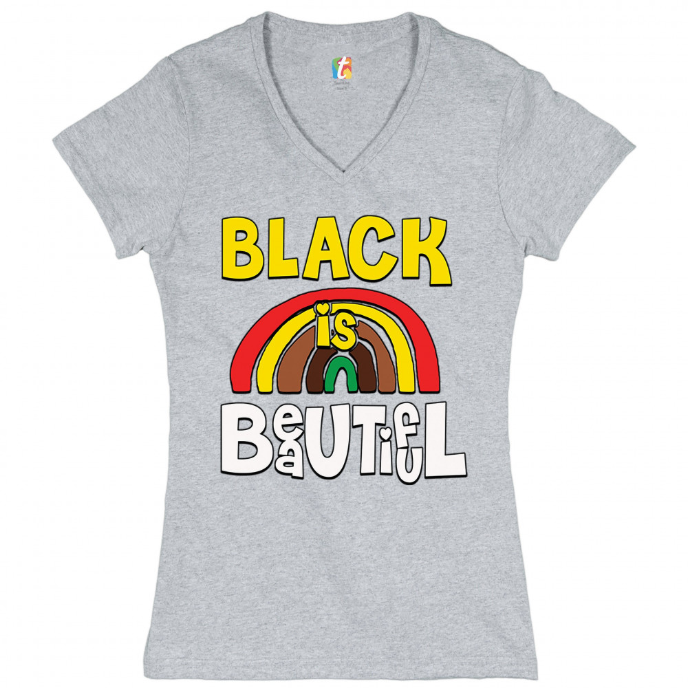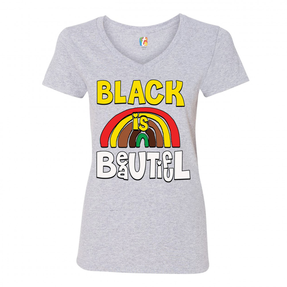 BLACK IS BEAUTIFUL women's v-neck t-shirt african american black pride tee gray