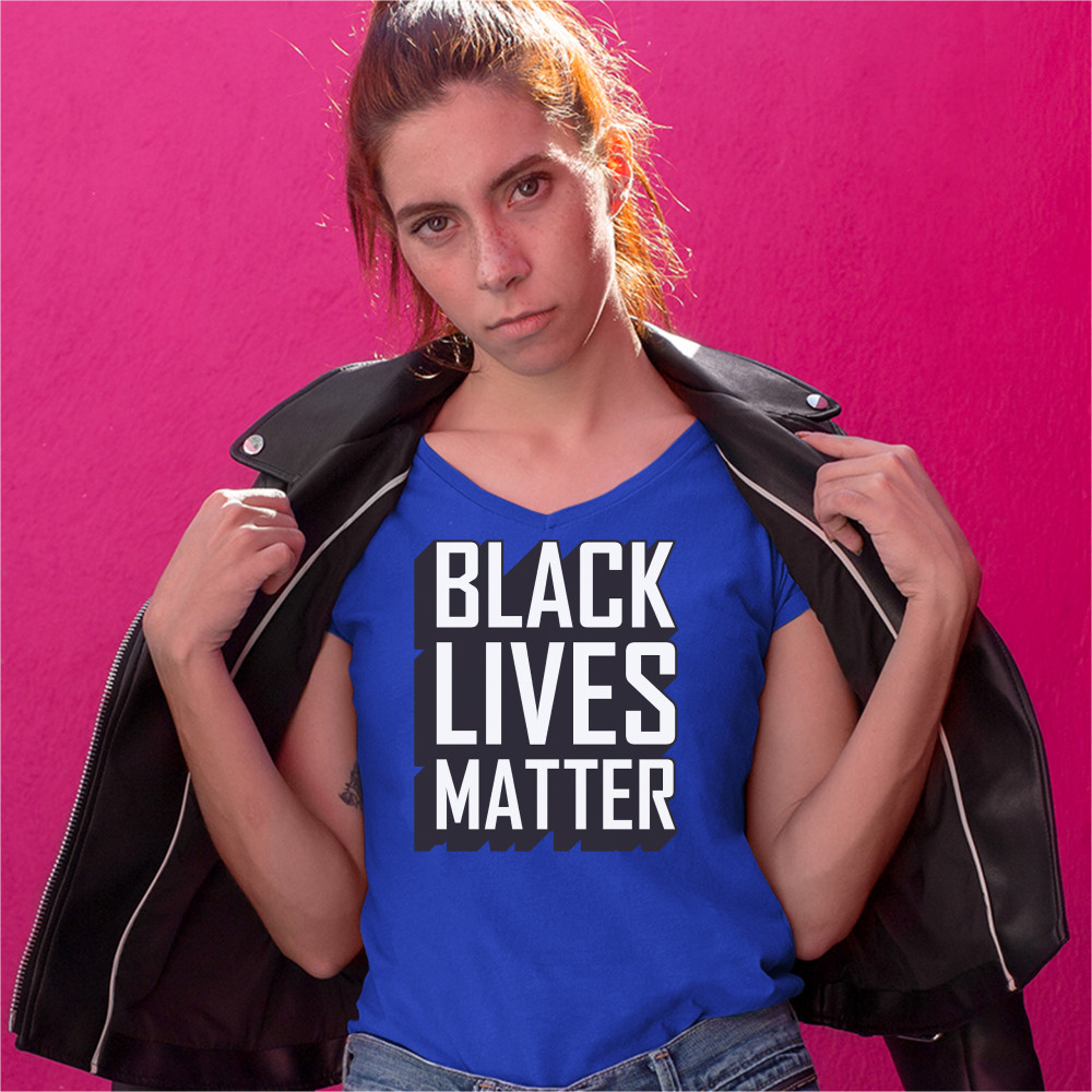BLACK LIVES MATTER women's v-neck t-shirt equality human rights protest tee royal blue