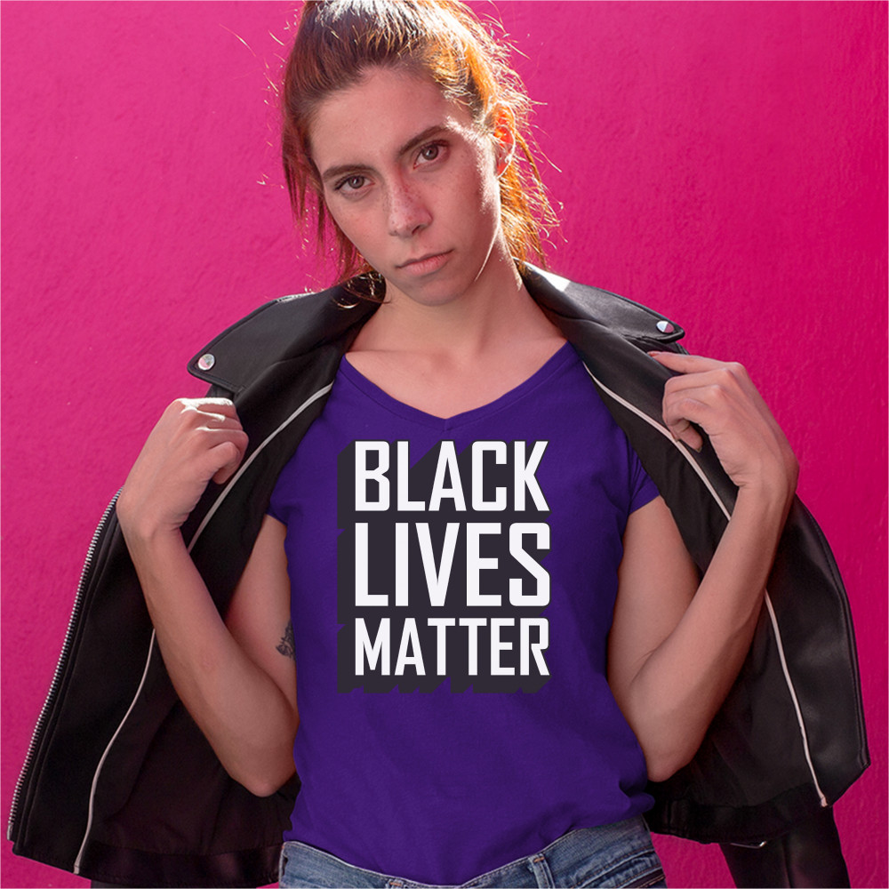 BLACK LIVES MATTER women's v-neck t-shirt equality human rights protest tee purple