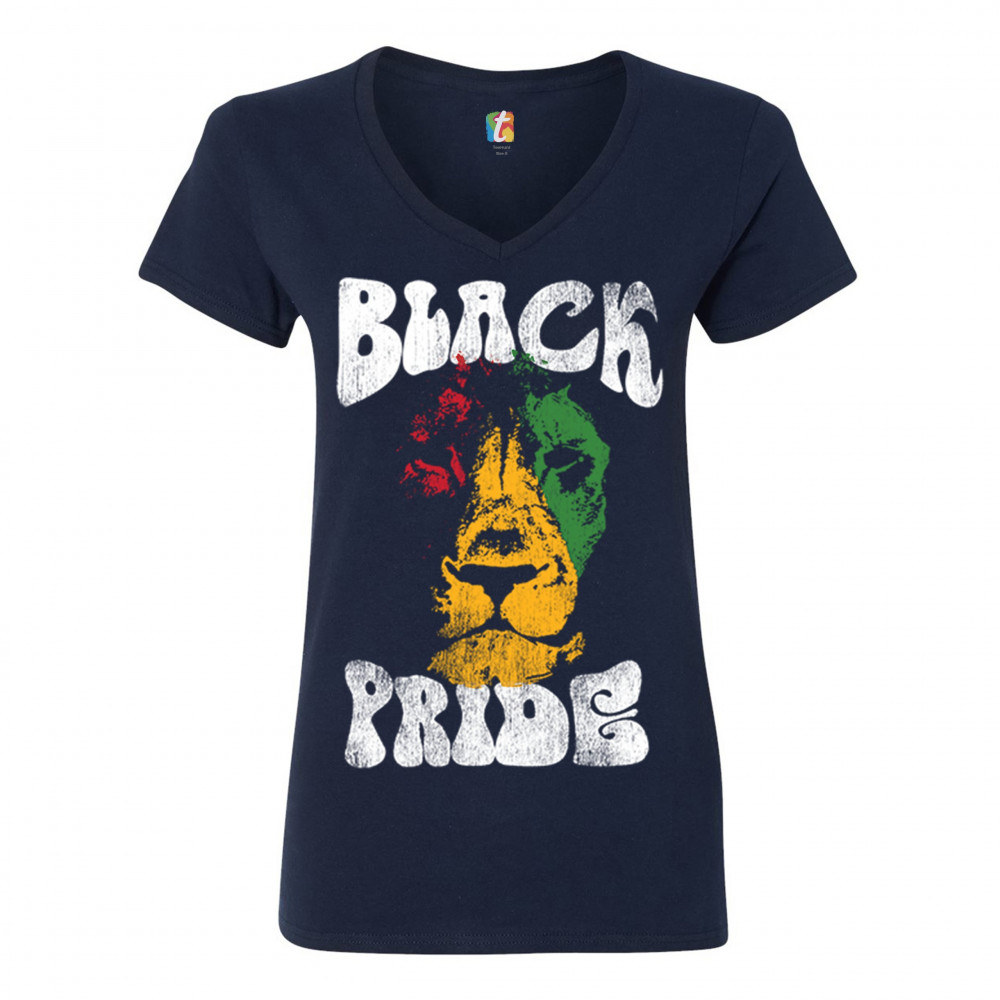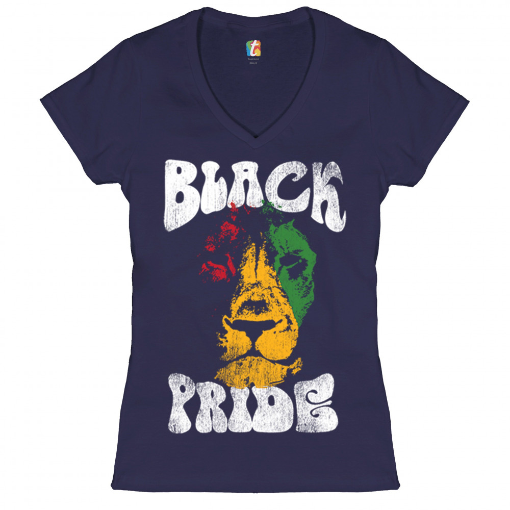 BLACK PRIDE women's v-neck t-shirt black culture equality african lion tee navy blue