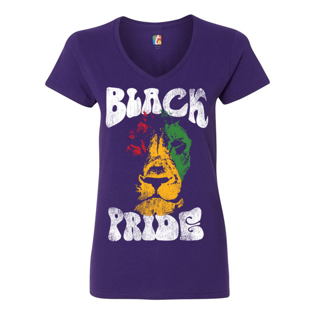 BLACK PRIDE women's v-neck t-shirt black culture equality african lion tee purple