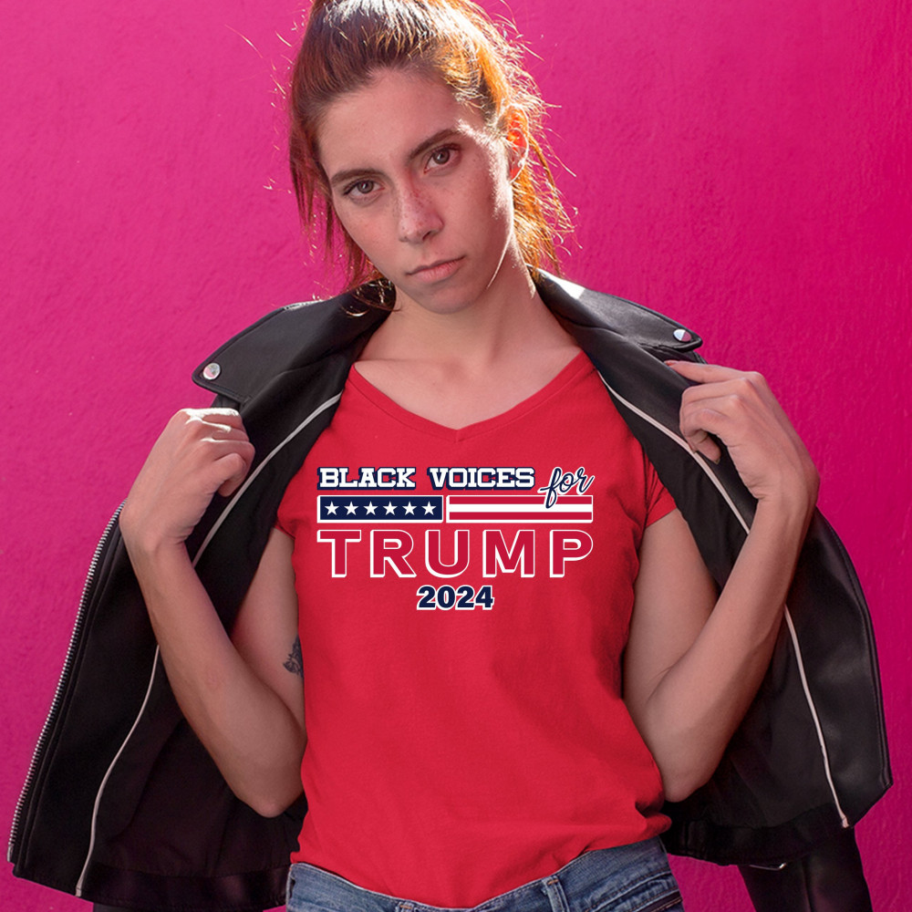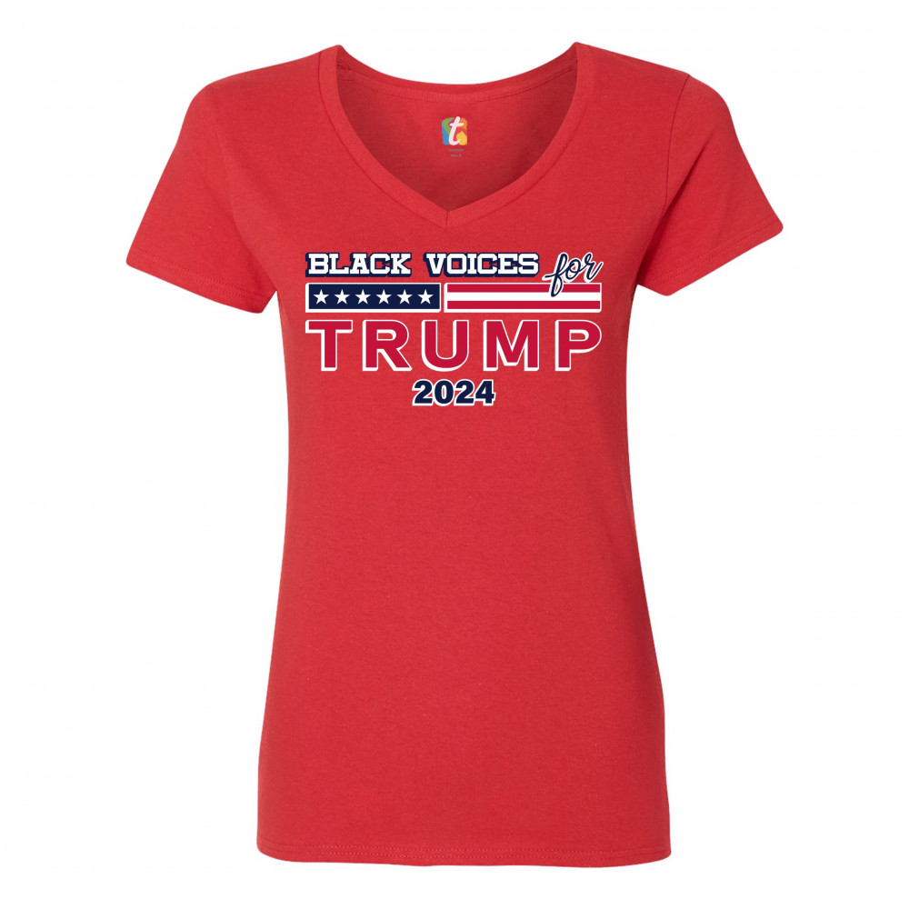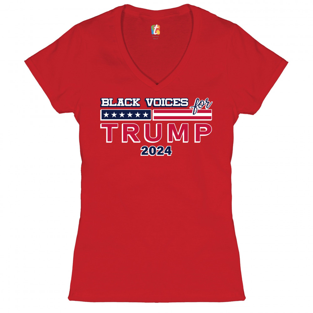 BLACK VOICES FOR TRUMP women's v-neck t-shirt donald trump 2024 maga tee red