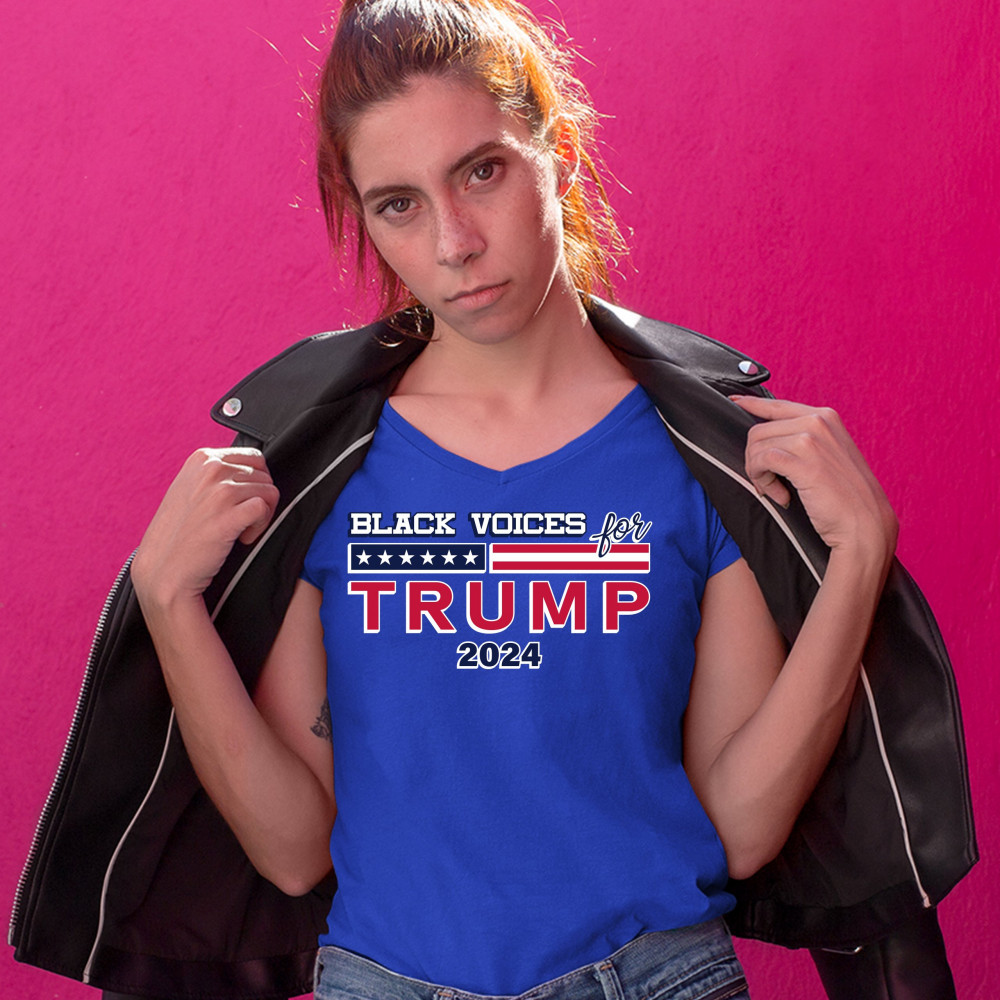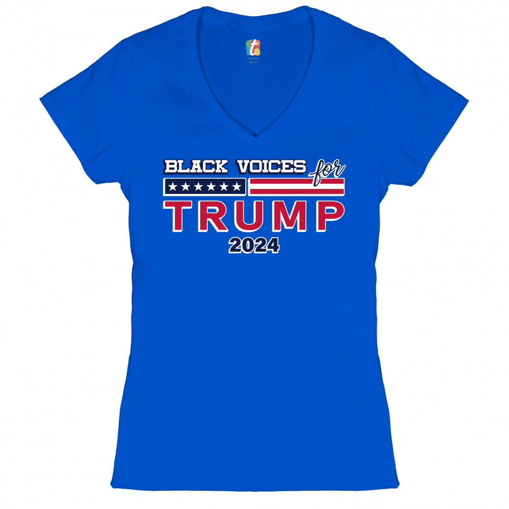 BLACK VOICES FOR TRUMP women's v-neck t-shirt donald trump 2024 maga tee royal blue