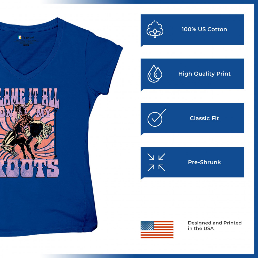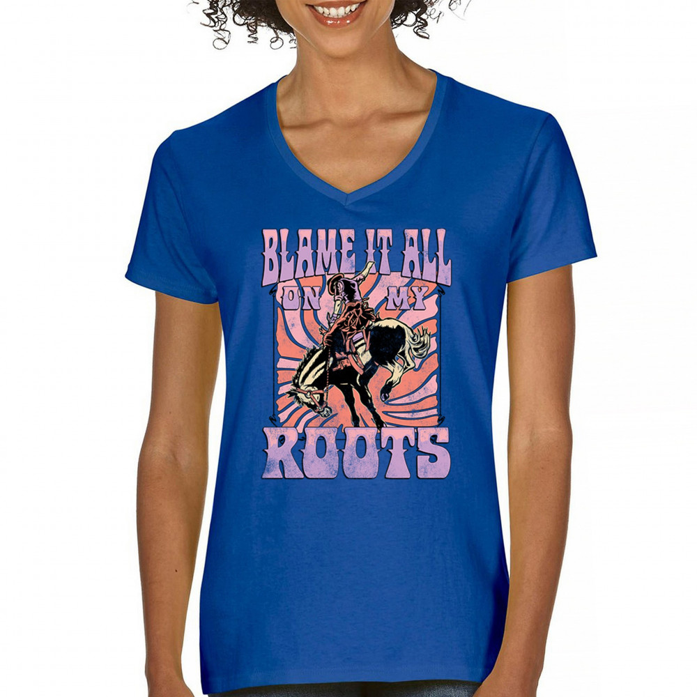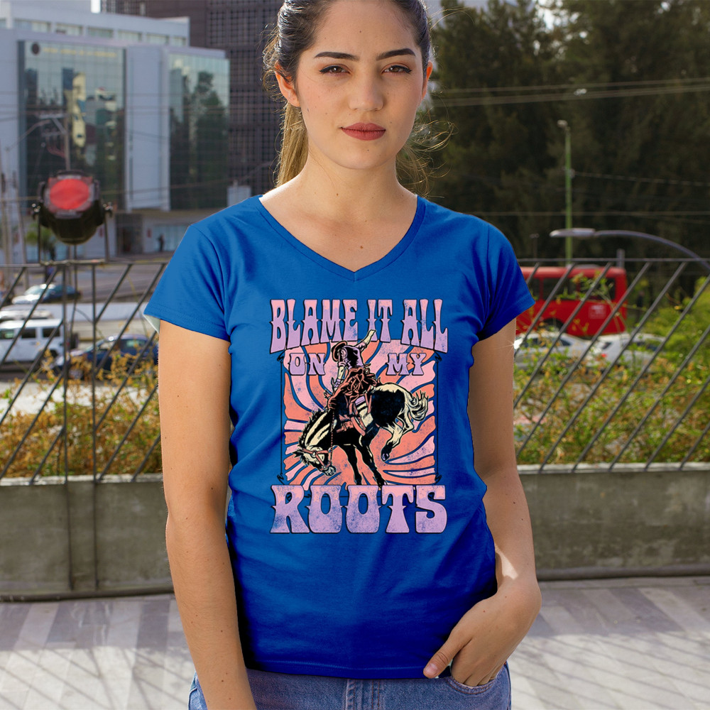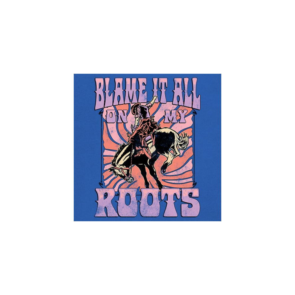 Blame It All On My Roots is vintage country style with rodeo spirit, perfect for small town life, barn dances, and wild country pride.