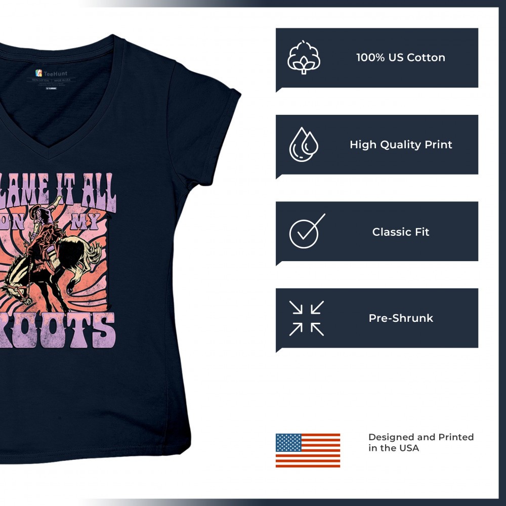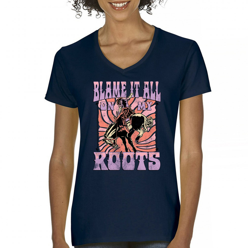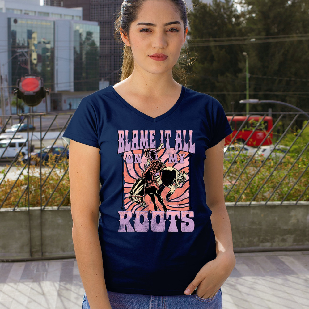 Blame It All On My Roots is vintage country style with rodeo spirit, perfect for small town life, barn dances, and wild country pride.