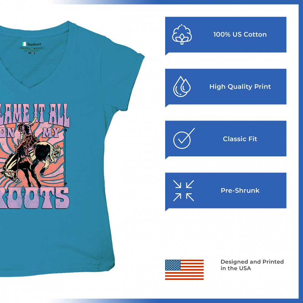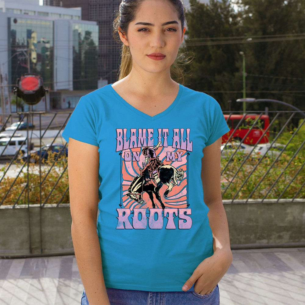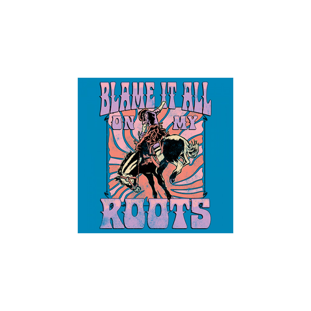 Blame It All On My Roots is vintage country style with rodeo spirit, perfect for small town life, barn dances, and wild country pride.