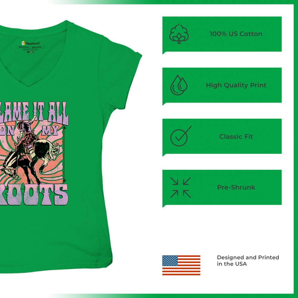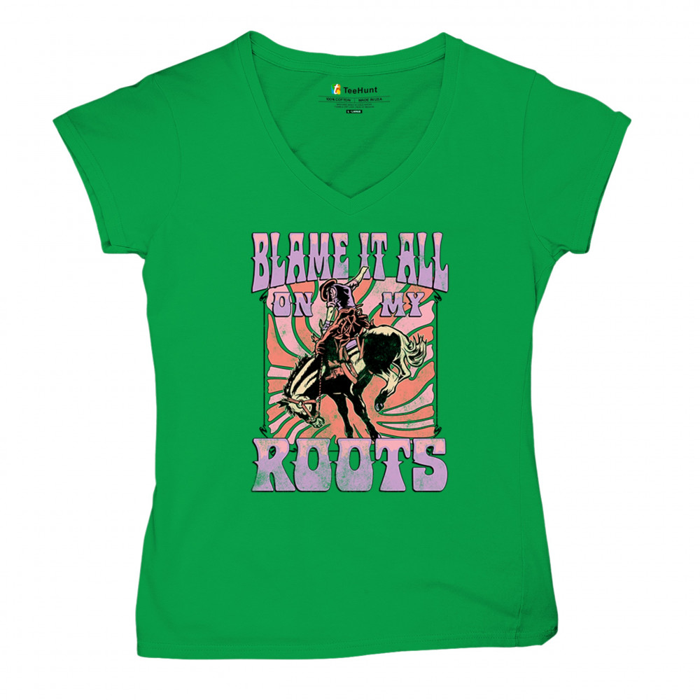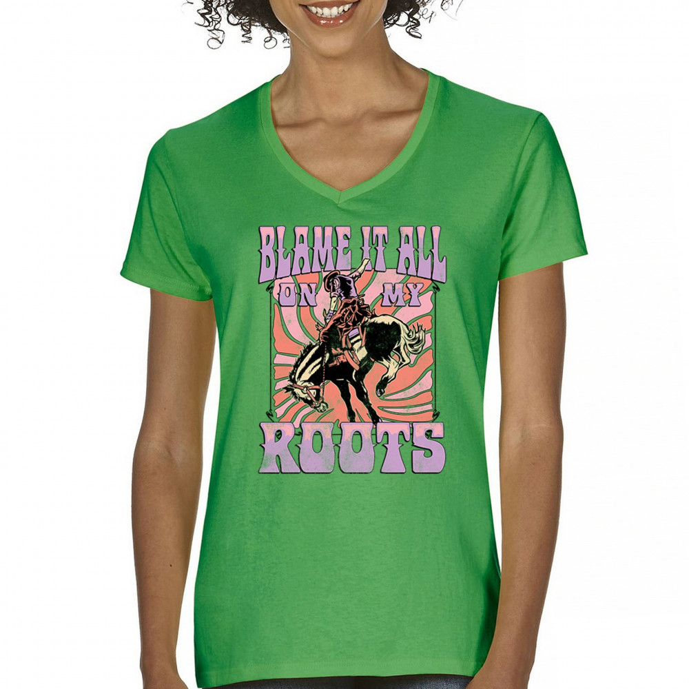 Blame It All On My Roots is vintage country style with rodeo spirit, perfect for small town life, barn dances, and wild country pride.