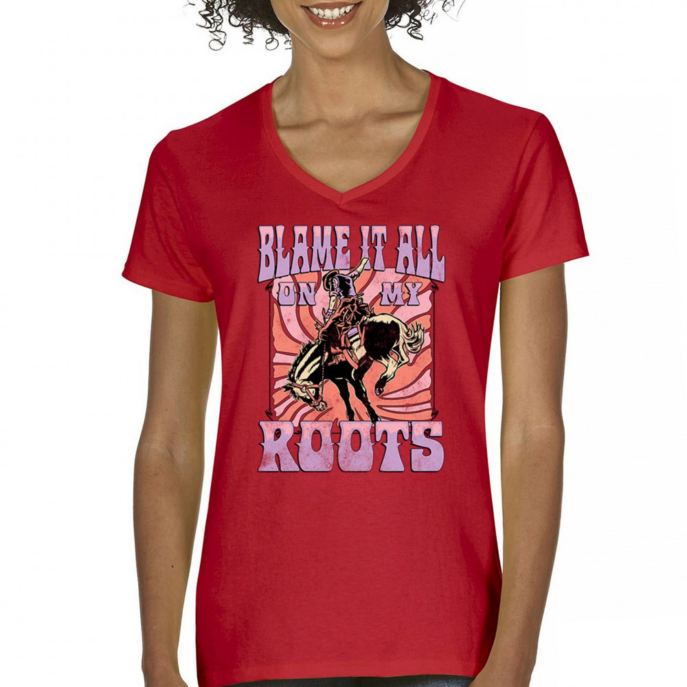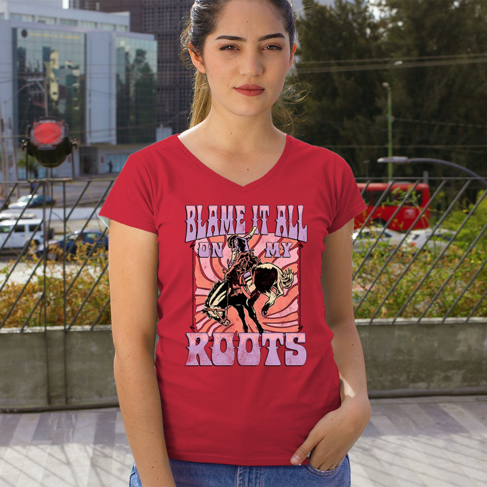 Blame It All On My Roots is vintage country style with rodeo spirit, perfect for small town life, barn dances, and wild country pride.