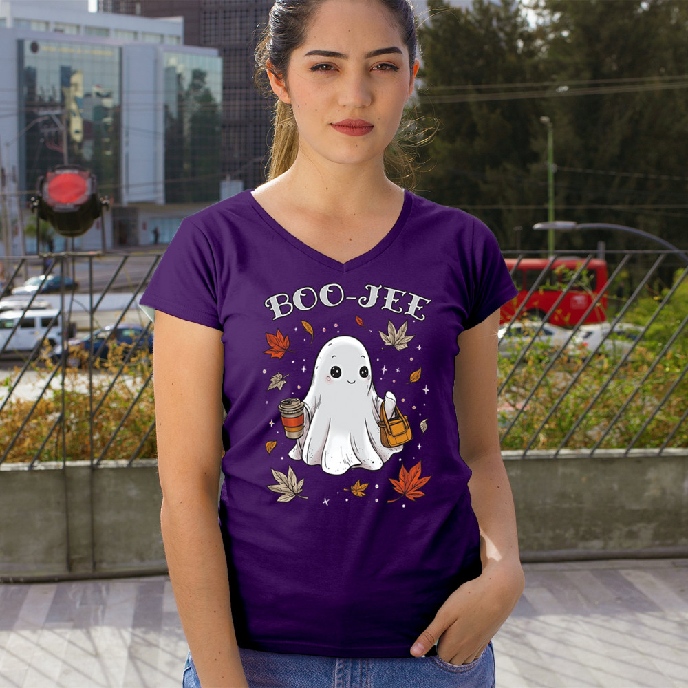 Get in the Halloween spirit with this playful Boo-Jee cute ghost design featuring a funny pumpkin head, cozy candy bucket, and spooky-scary charm. Great for trick or treat fun, haunted house parties, autumn leaves strolls, or sipping coffee on a crisp fall night, this shirt blends festive vibes with seasonal style. Perfect for anyone who loves Halloween fun and cozy fall flair.