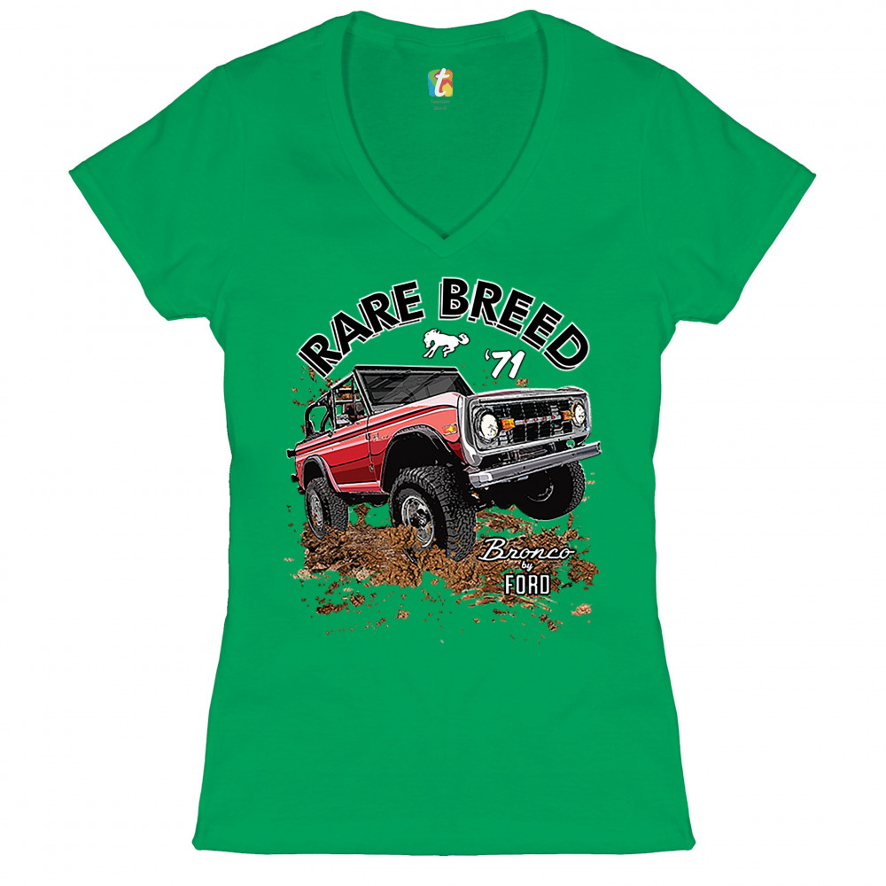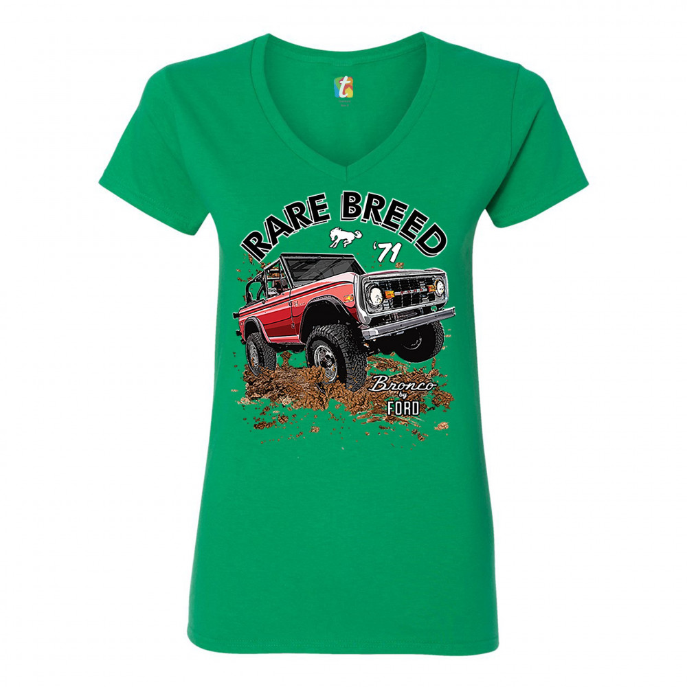 BRONCO BY FORD women's v-neck t-shirt rare breed '71 ford truck licensed tee green