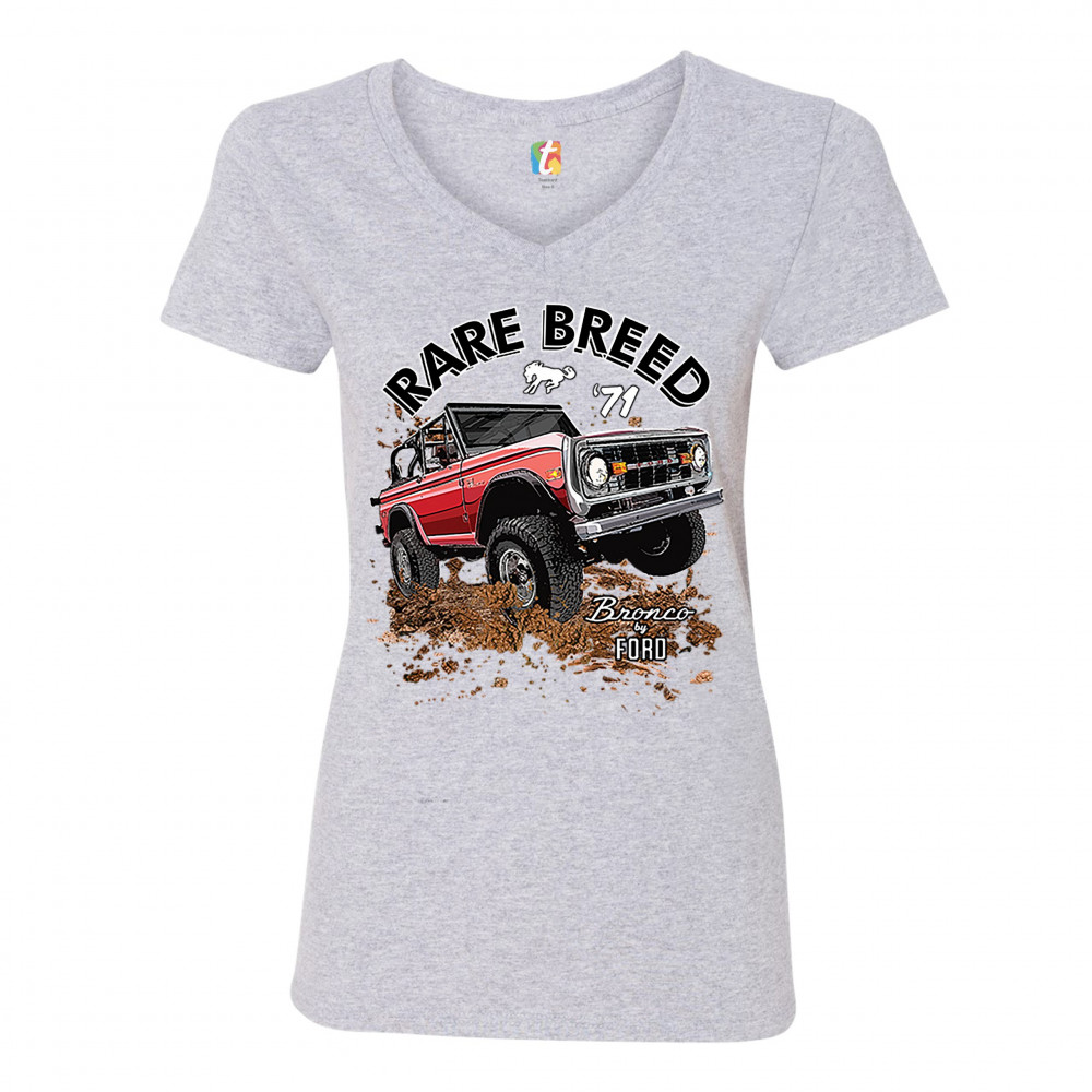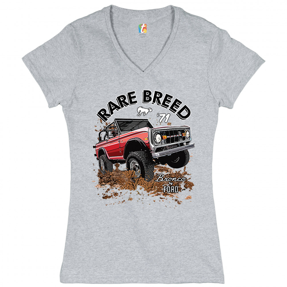 BRONCO BY FORD women's v-neck t-shirt rare breed '71 ford truck licensed tee gray