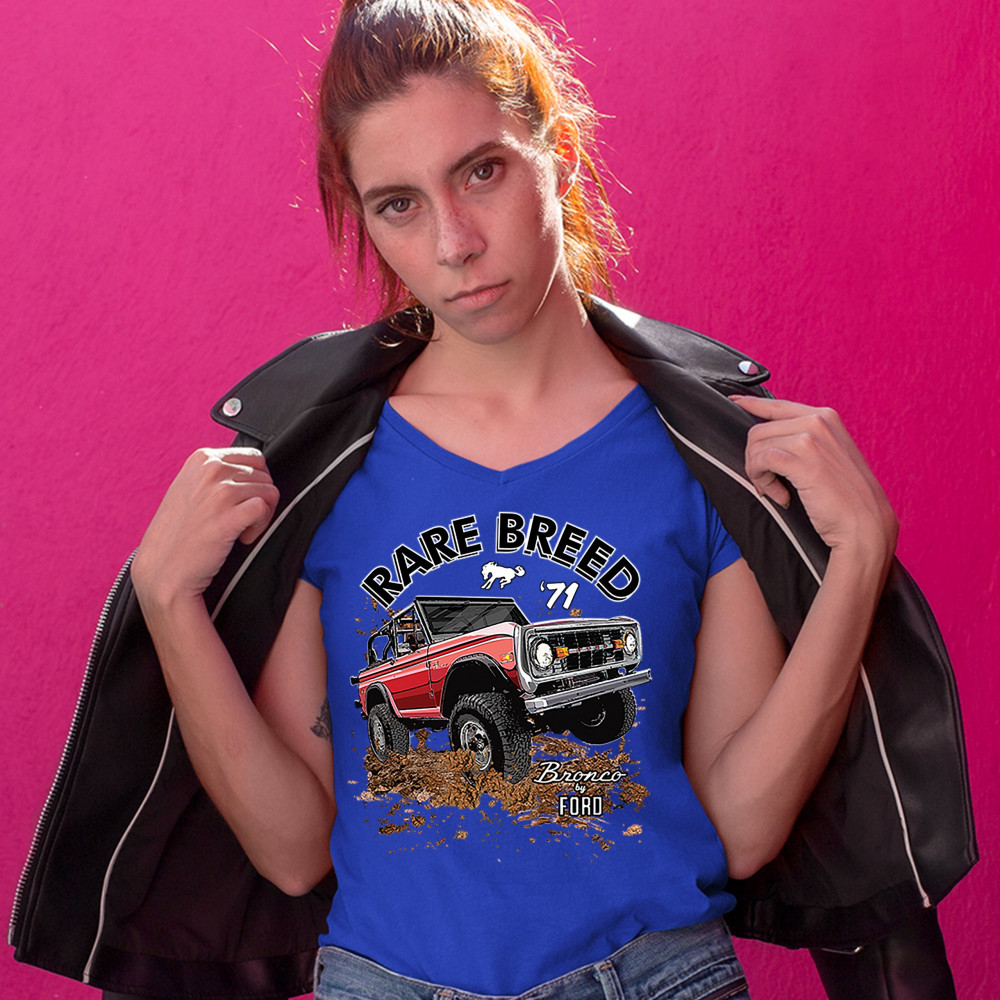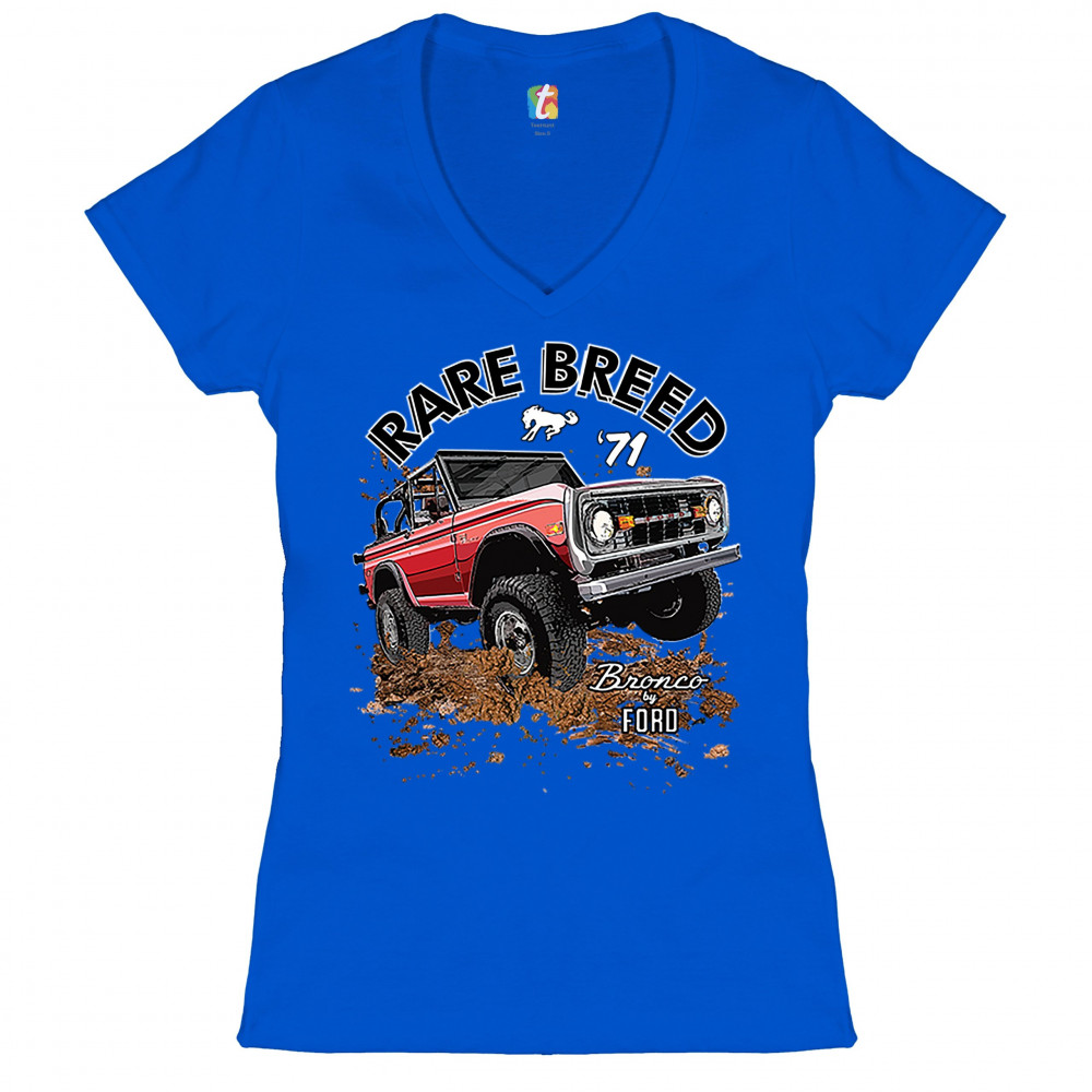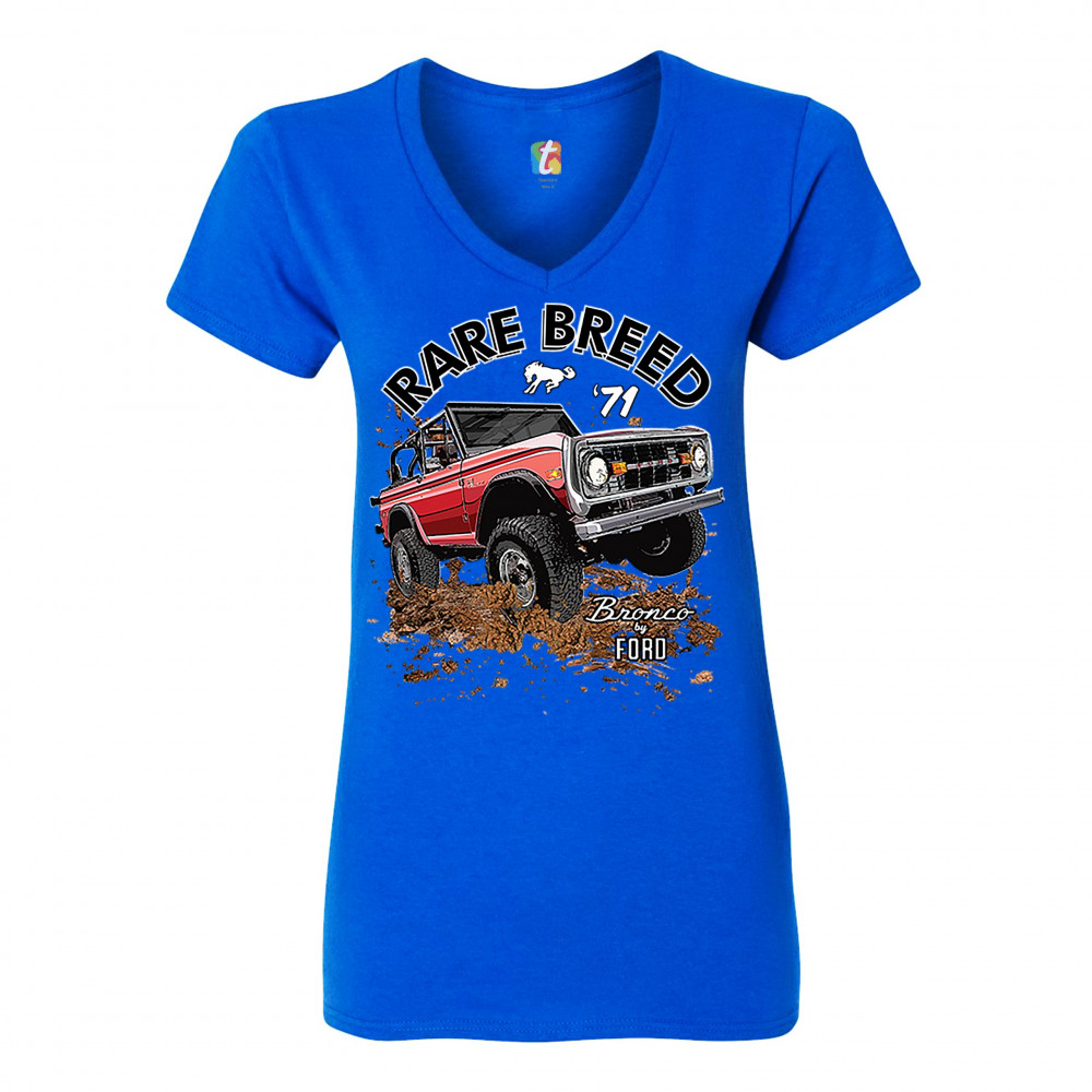 BRONCO BY FORD women's v-neck t-shirt rare breed '71 ford truck licensed tee royal blue