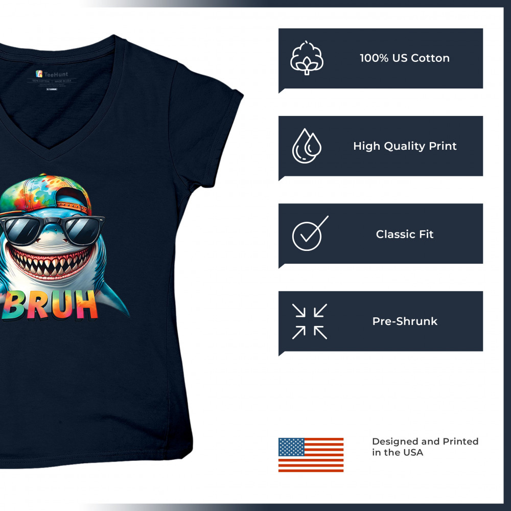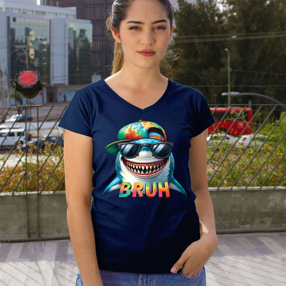 Bruh Shark meme shirt with Gen Z humor, cartoon shark design, summer beach vibes, Sigma Aura, and Italian Brainrot internet humor.