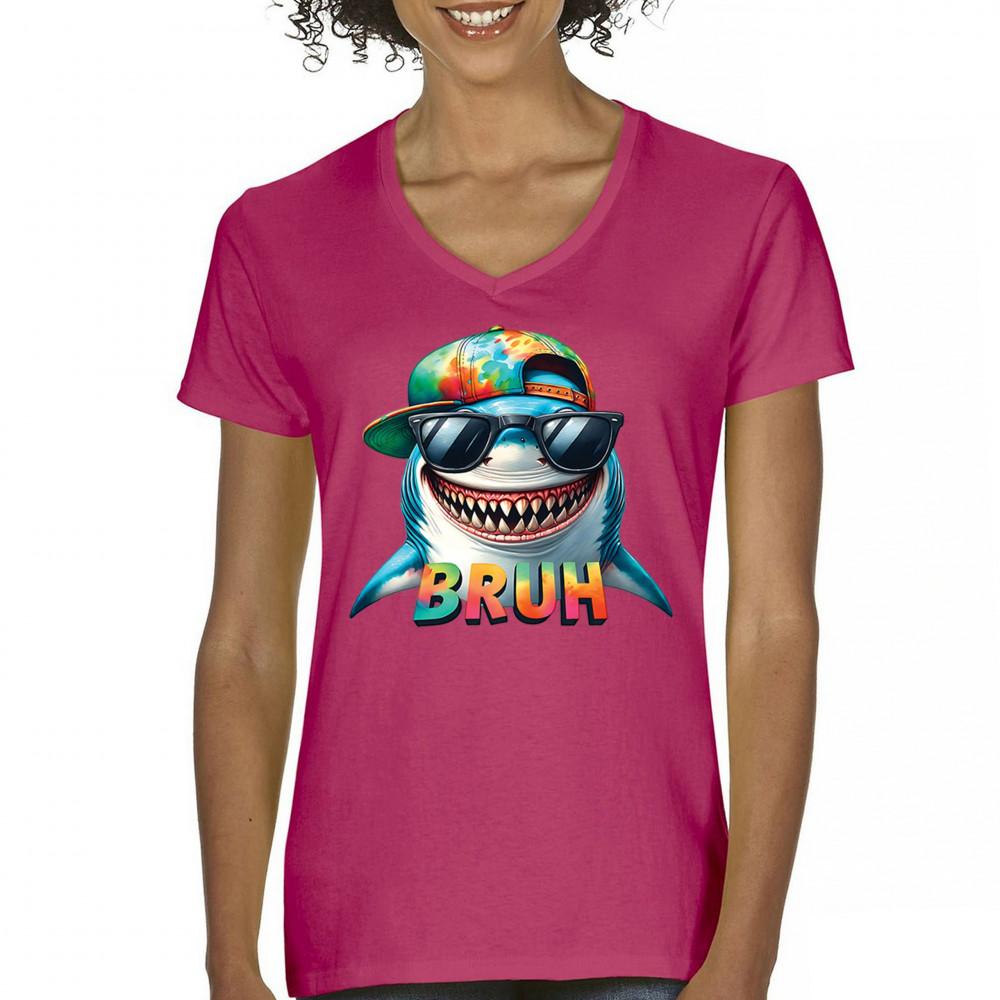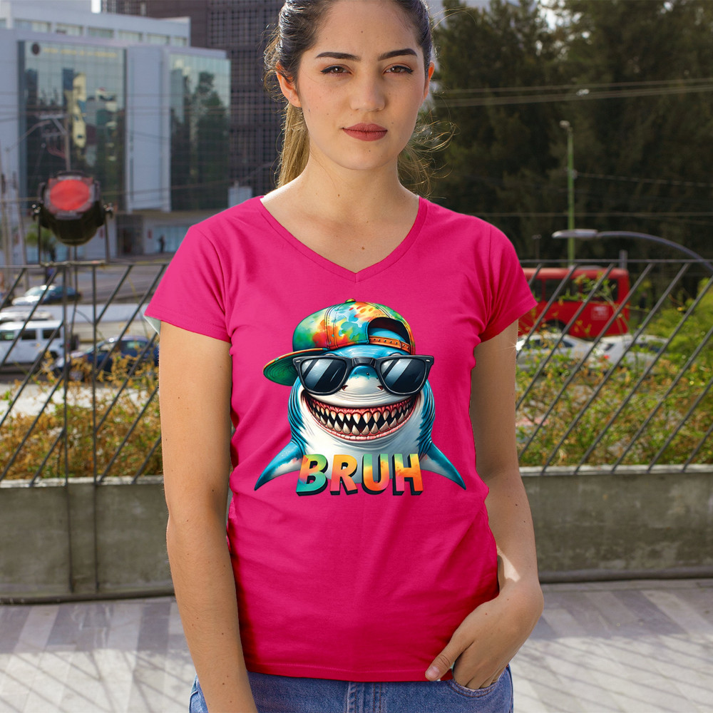 Bruh Shark meme shirt with Gen Z humor, cartoon shark design, summer beach vibes, Sigma Aura, and Italian Brainrot internet humor.