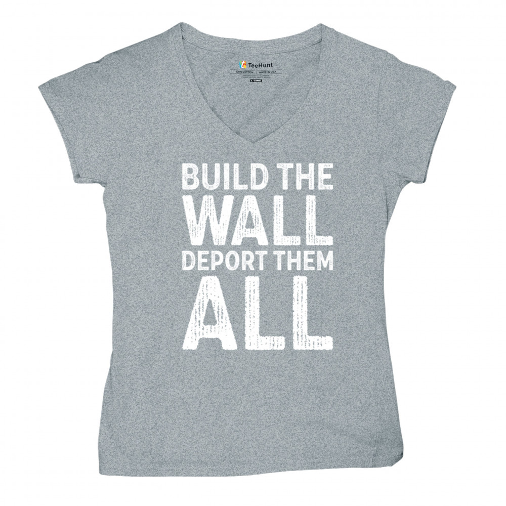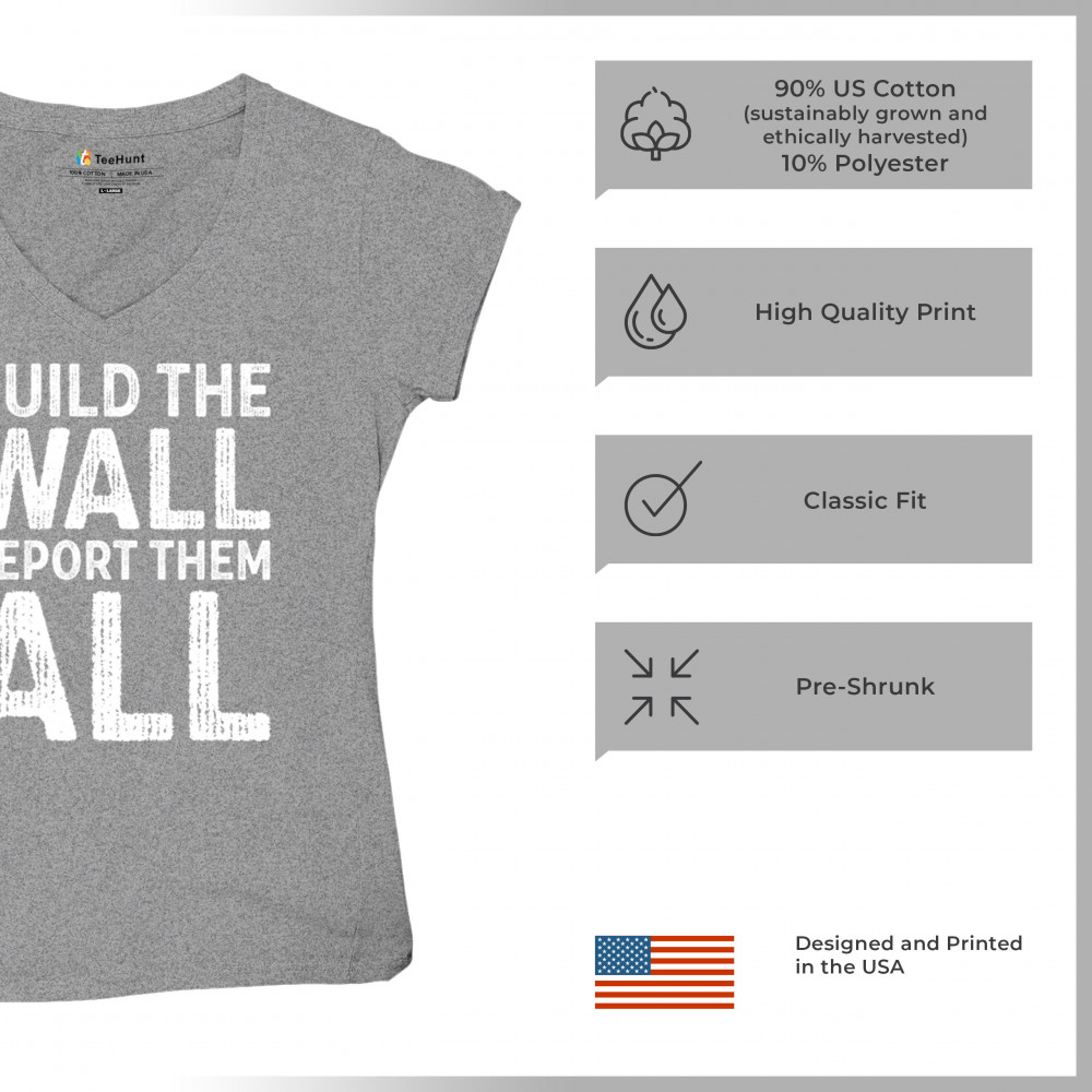 Stand strong for border security with our 'Build the Wall Deport Them All Trump 2024' tee. As a proud Trump supporter, join the America First movement and champion conservative values. Trust in God, not government, and reject the failed policies of Sleepy Joe. Let's go Brandon! Let the American flag wave high as we rally for victory in 2024.