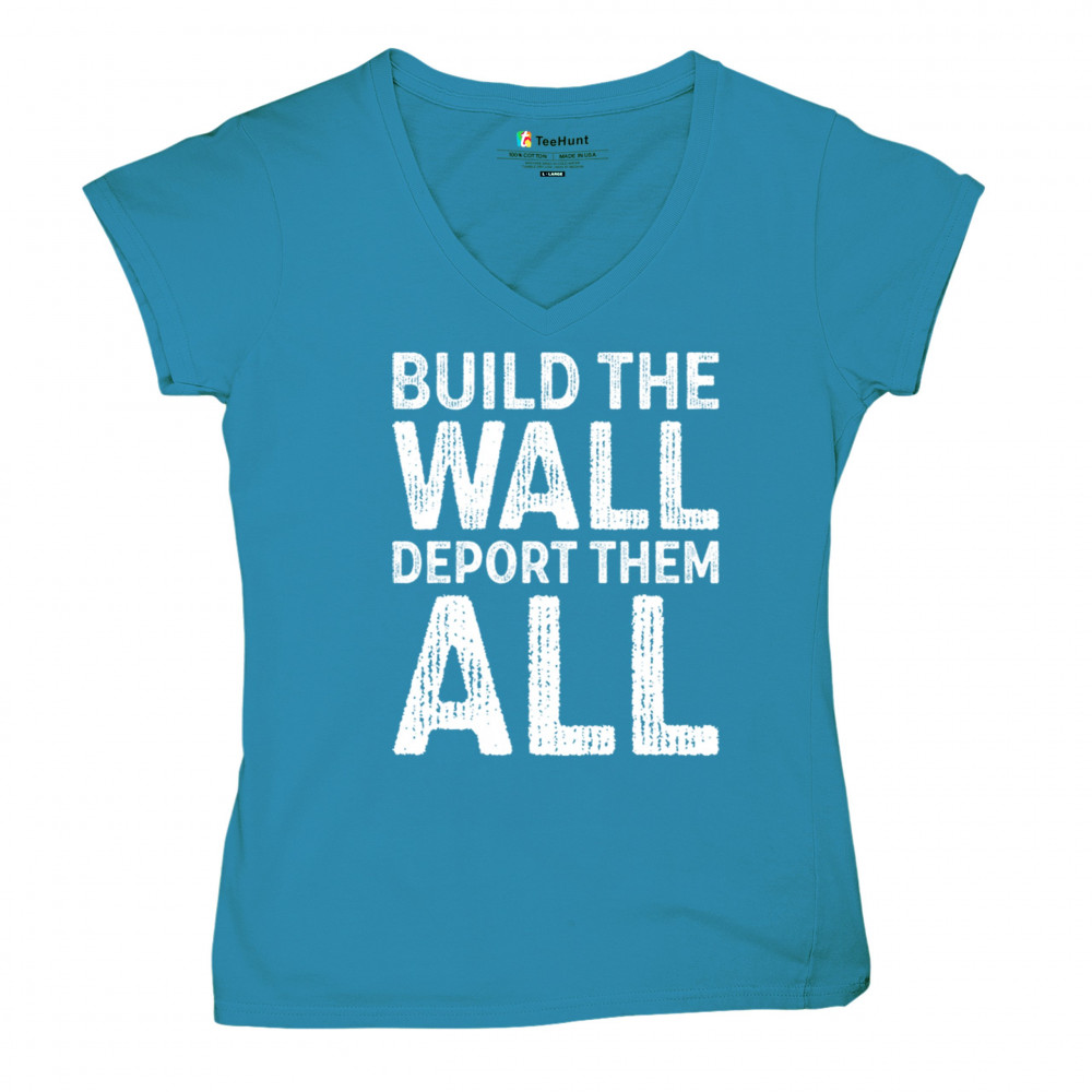 Stand strong for border security with our 'Build the Wall Deport Them All Trump 2024' tee. As a proud Trump supporter, join the America First movement and champion conservative values. Trust in God, not government, and reject the failed policies of Sleepy Joe. Let's go Brandon! Let the American flag wave high as we rally for victory in 2024.