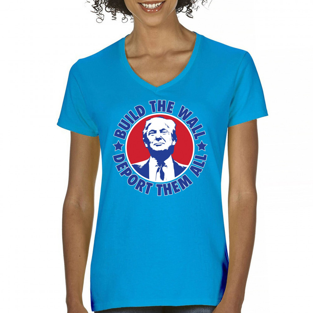 Showcase your unwavering support with a bold design that champions America first. Featuring the "Build the Wall Deport Them All Trump 2024" message, this piece is a must-have for conservatives, symbolizing trust in God over government, and a commitment to never surrender. Adorned with the American flag and a call to rebelution, it's perfect for any Trump supporter ready to stand against the tide.