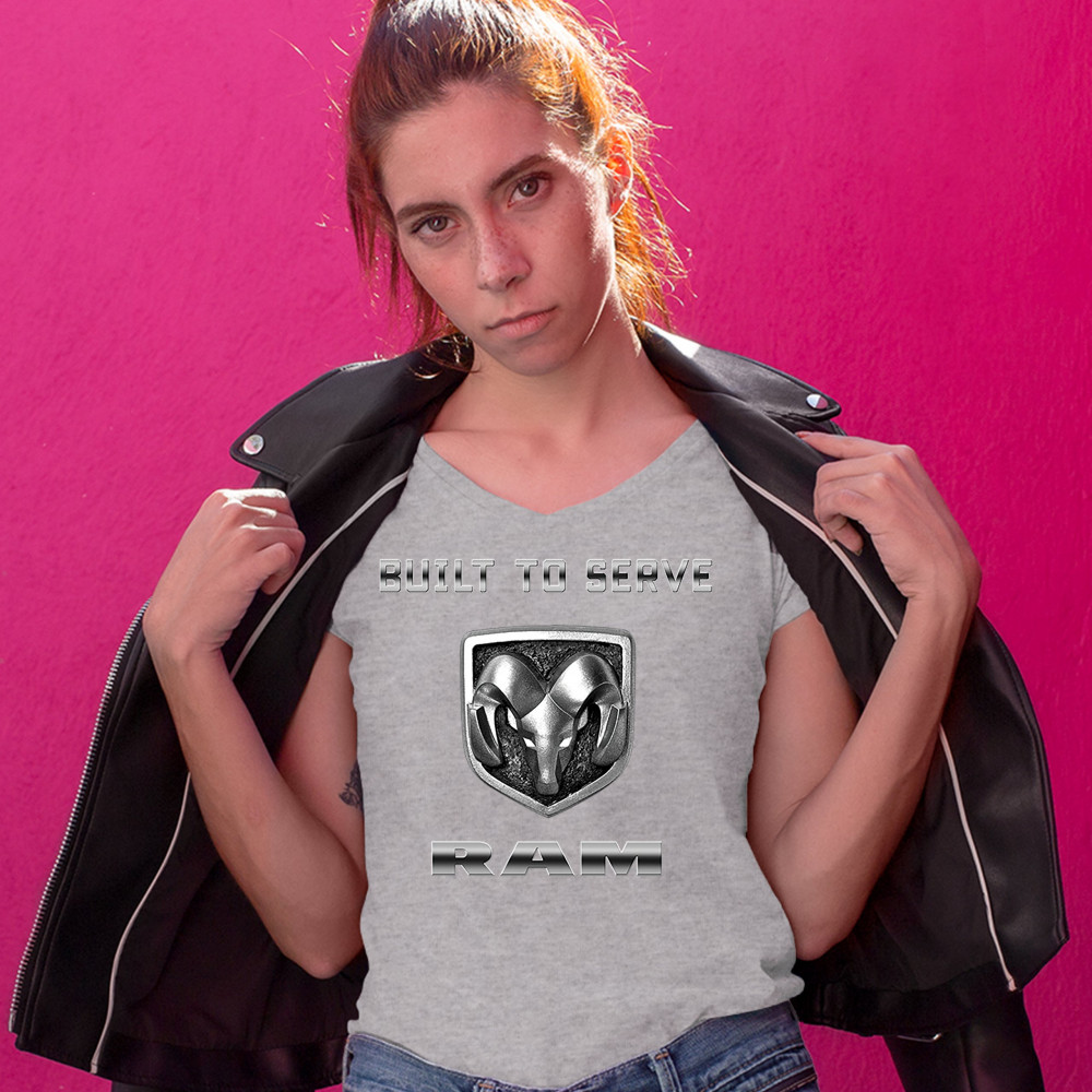 BUILT TO SERVE RAM women's v-neck t-shirt licensed guts and glory ram tee gray