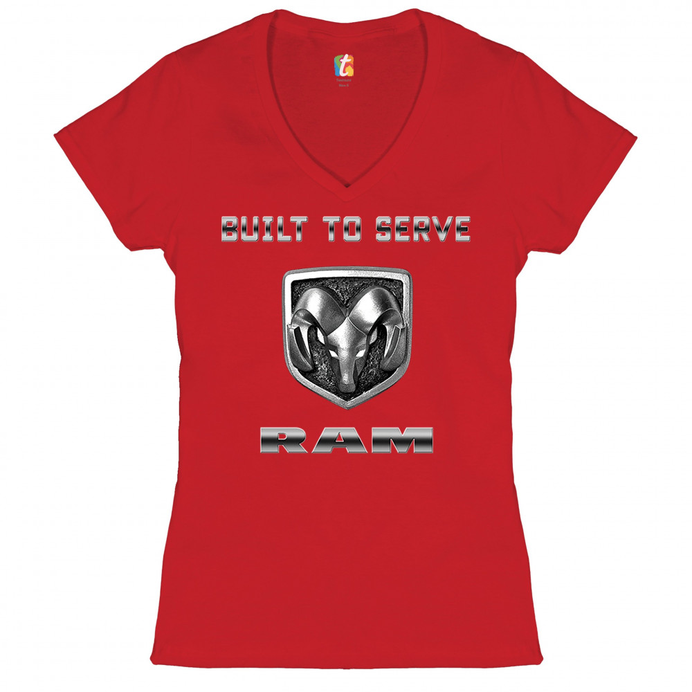 BUILT TO SERVE RAM women's v-neck t-shirt licensed guts and glory ram tee red