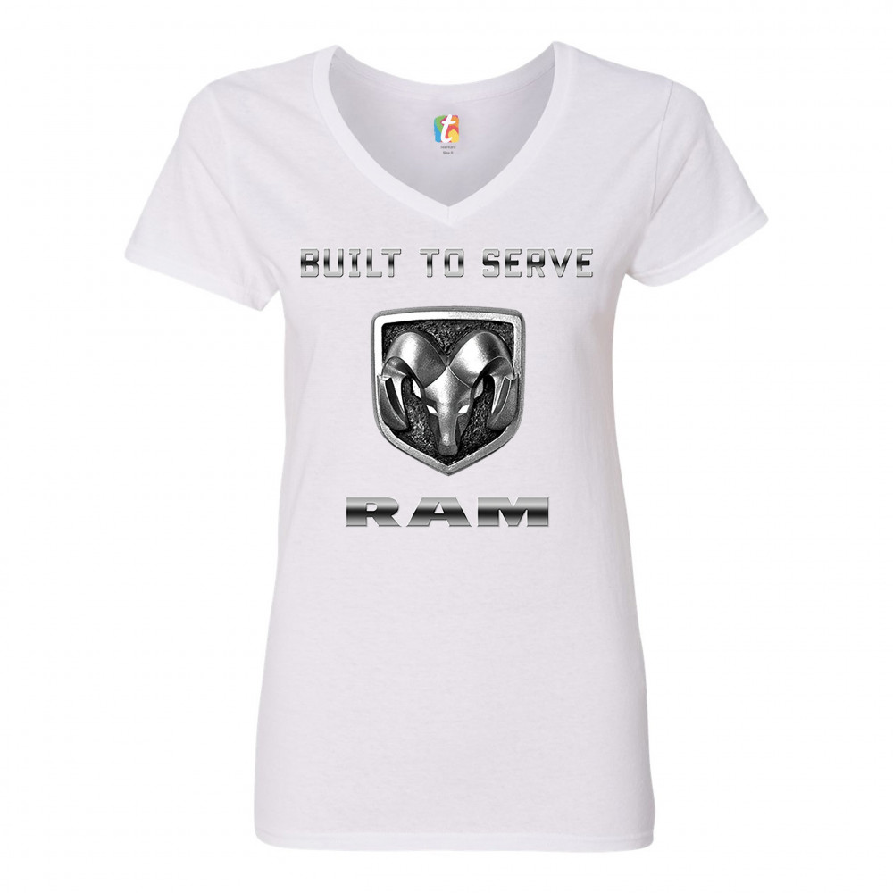 BUILT TO SERVE RAM women's v-neck t-shirt licensed guts and glory ram tee white