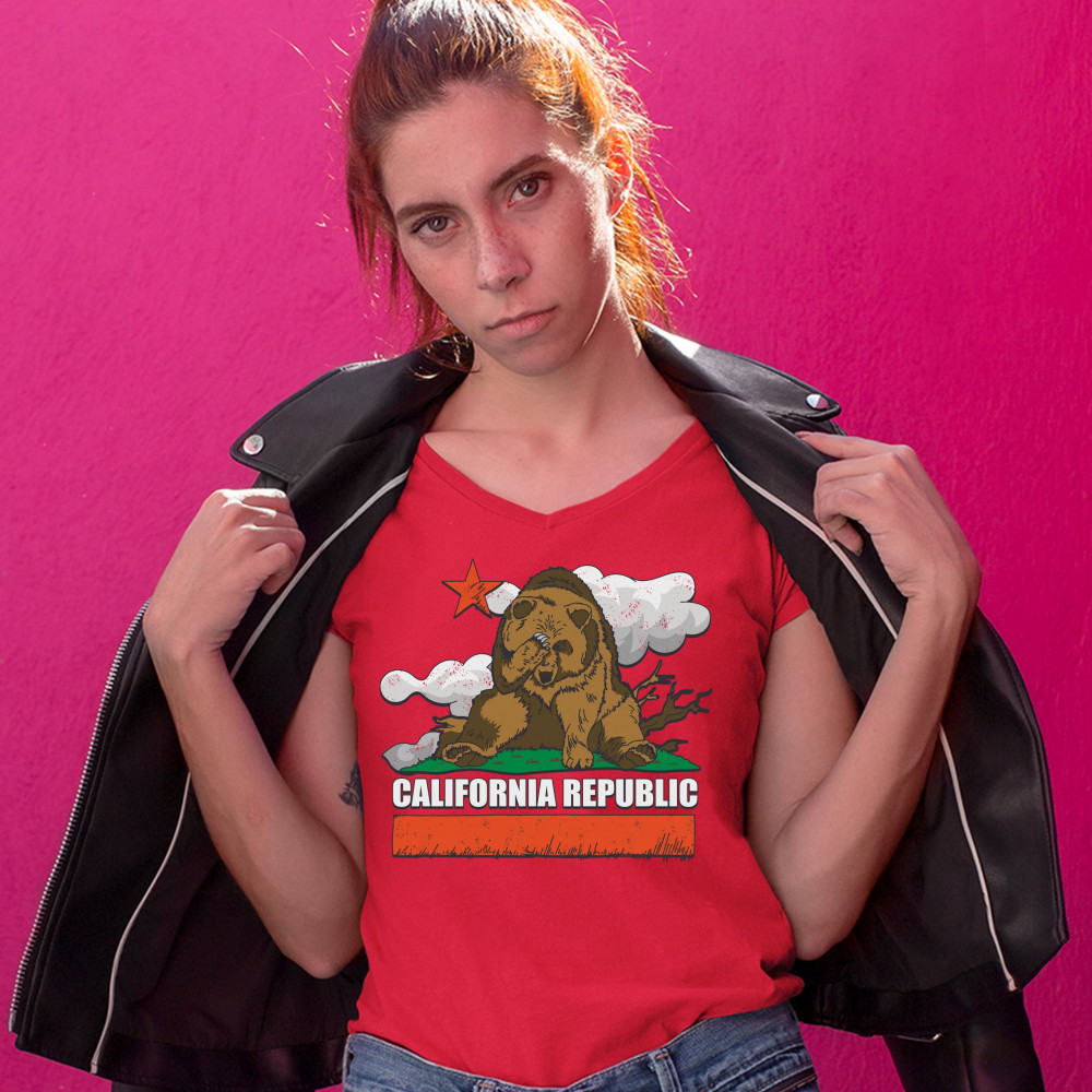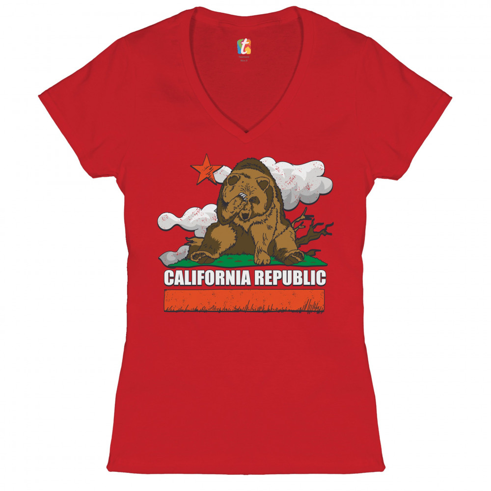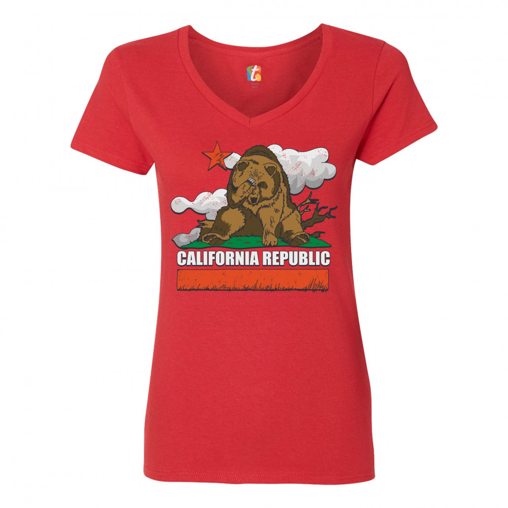 CALIFORNIA BEAR FACEPALM women's v-neck t-shirt great california exodus tee red