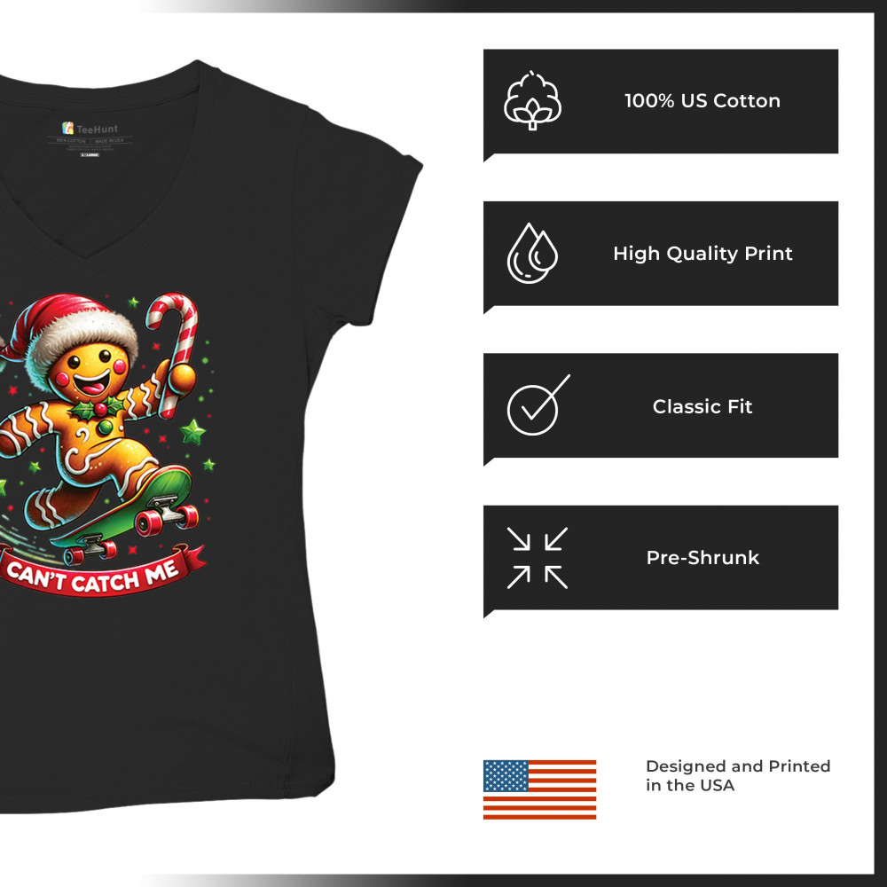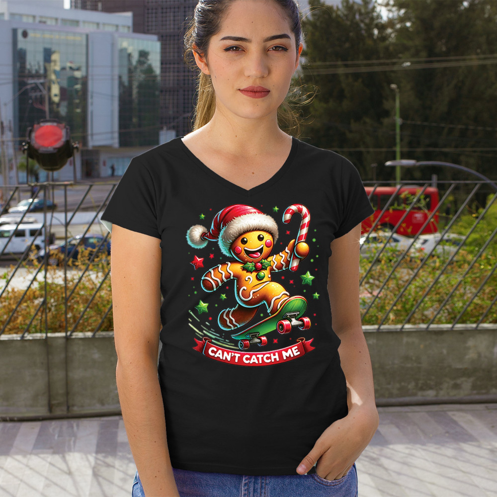 A fun Christmas design featuring a gingerbread character on a skateboard, candy cane in hand, and bright festive colors. Perfect for holiday party outfits, family gatherings, Christmas photos, festive humor fans, stocking stuffer gifting, winter celebrations, and anyone who loves playful seasonal graphics with cheerful personality.