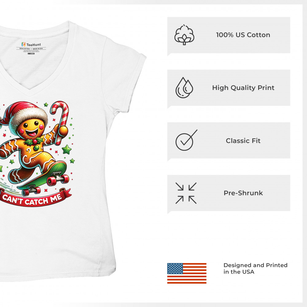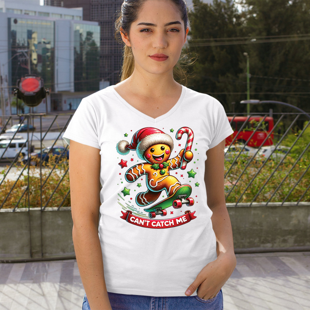 A fun Christmas design featuring a gingerbread character on a skateboard, candy cane in hand, and bright festive colors. Perfect for holiday party outfits, family gatherings, Christmas photos, festive humor fans, stocking stuffer gifting, winter celebrations, and anyone who loves playful seasonal graphics with cheerful personality.