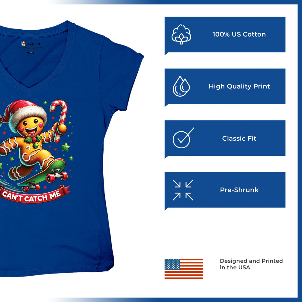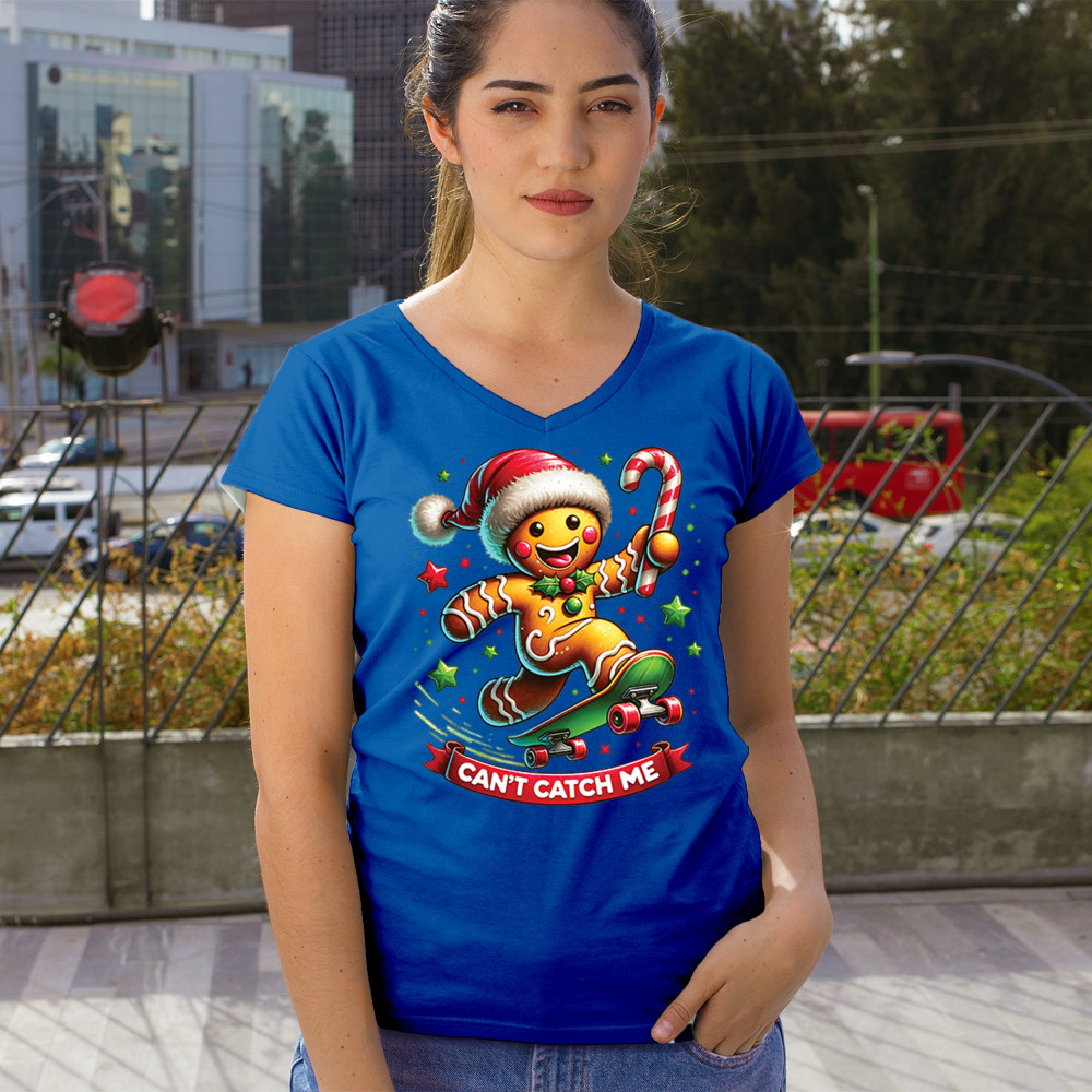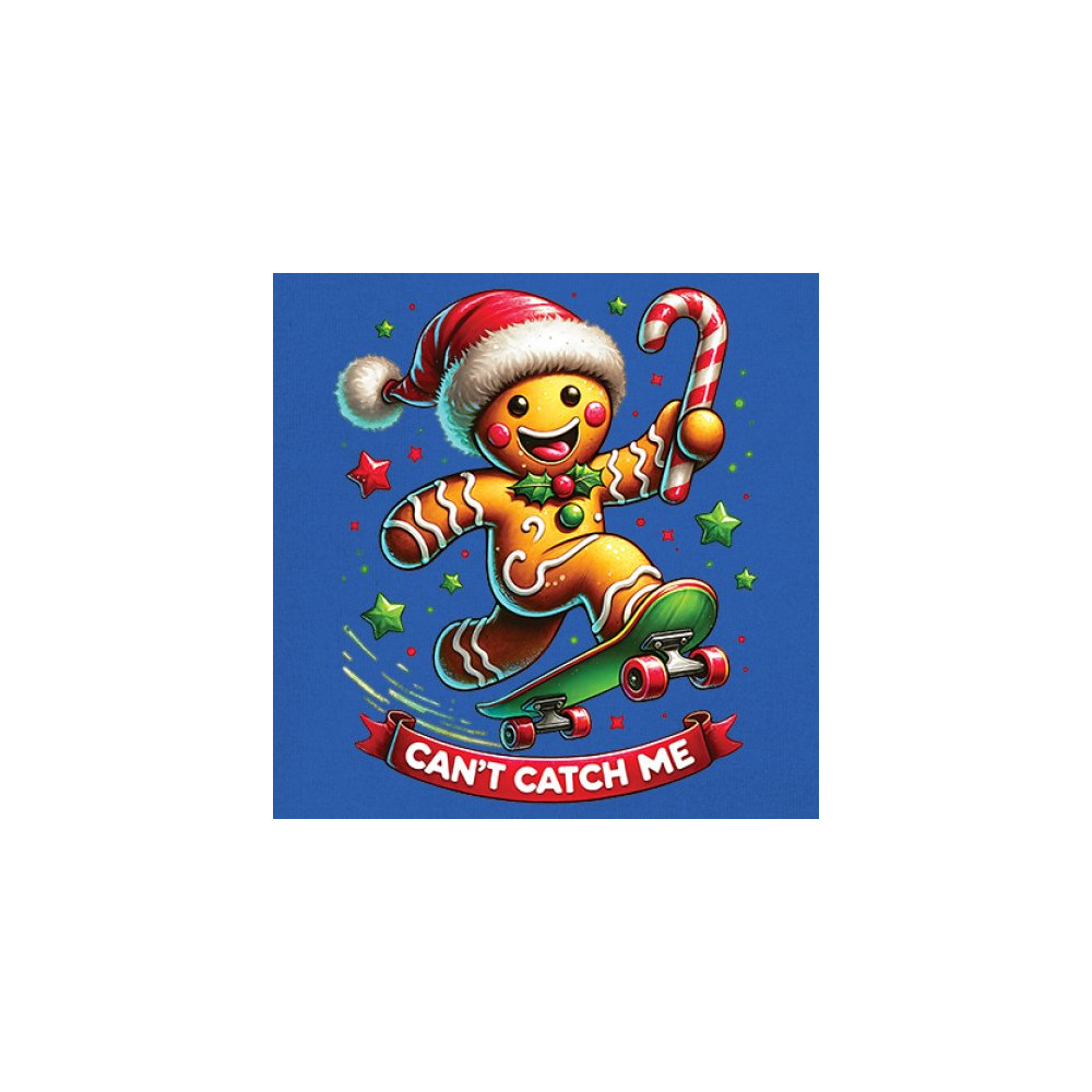 A fun Christmas design featuring a gingerbread character on a skateboard, candy cane in hand, and bright festive colors. Perfect for holiday party outfits, family gatherings, Christmas photos, festive humor fans, stocking stuffer gifting, winter celebrations, and anyone who loves playful seasonal graphics with cheerful personality.