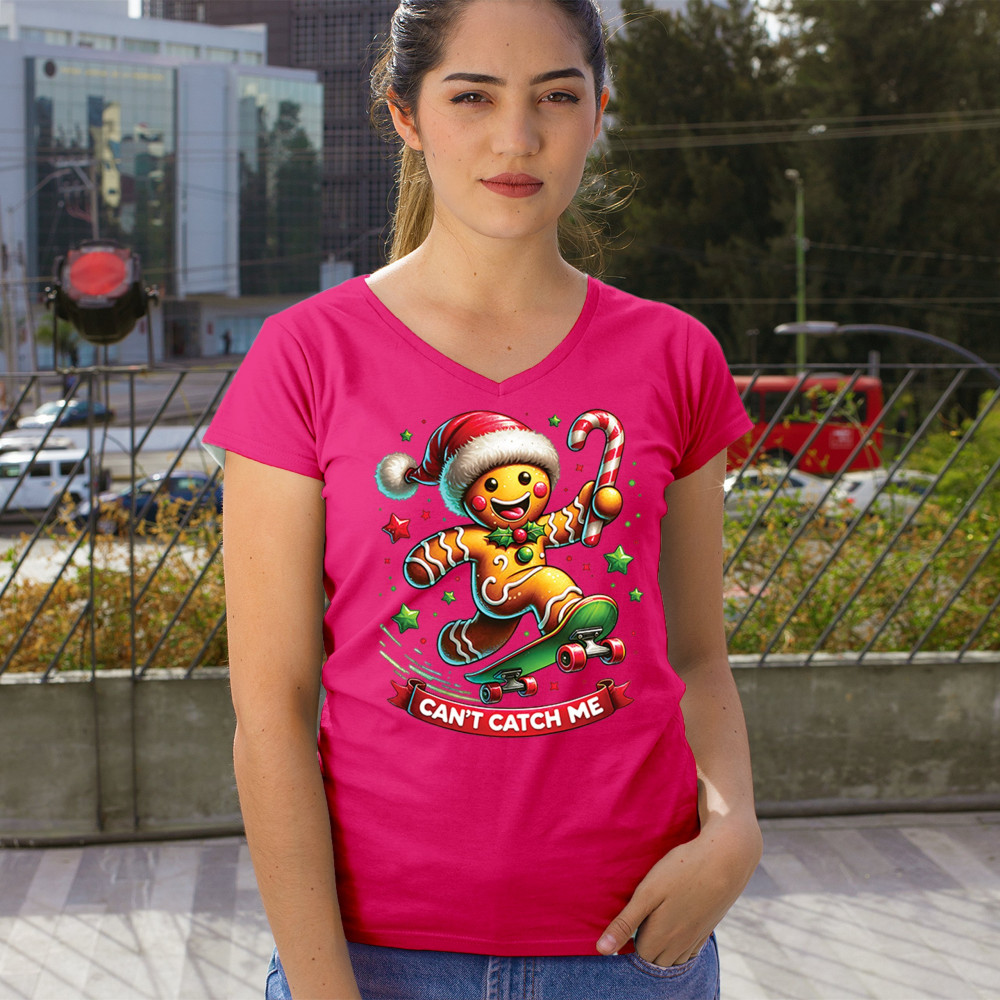 A fun Christmas design featuring a gingerbread character on a skateboard, candy cane in hand, and bright festive colors. Perfect for holiday party outfits, family gatherings, Christmas photos, festive humor fans, stocking stuffer gifting, winter celebrations, and anyone who loves playful seasonal graphics with cheerful personality.