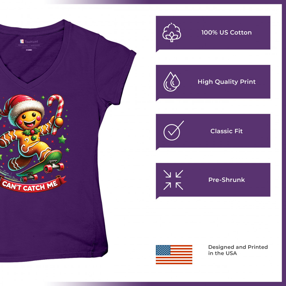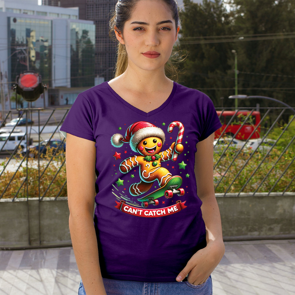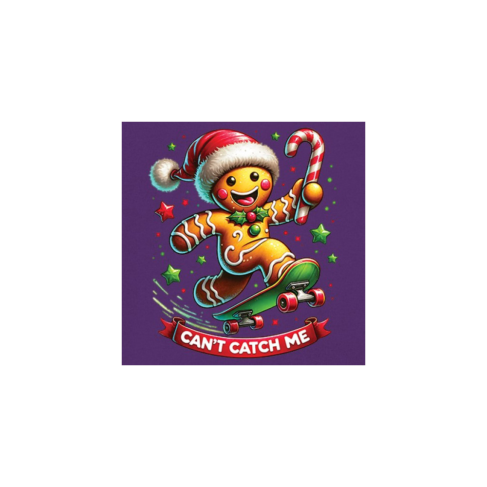 A fun Christmas design featuring a gingerbread character on a skateboard, candy cane in hand, and bright festive colors. Perfect for holiday party outfits, family gatherings, Christmas photos, festive humor fans, stocking stuffer gifting, winter celebrations, and anyone who loves playful seasonal graphics with cheerful personality.
