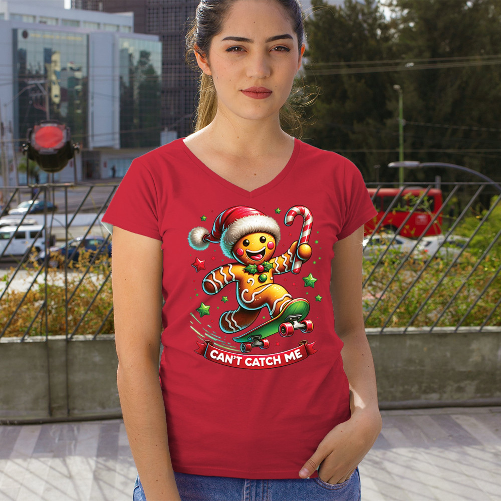 A fun Christmas design featuring a gingerbread character on a skateboard, candy cane in hand, and bright festive colors. Perfect for holiday party outfits, family gatherings, Christmas photos, festive humor fans, stocking stuffer gifting, winter celebrations, and anyone who loves playful seasonal graphics with cheerful personality.
