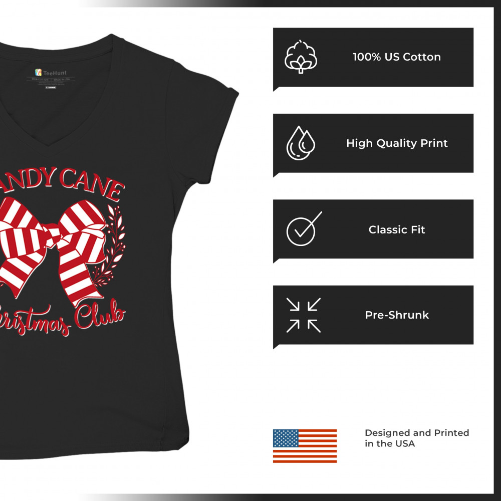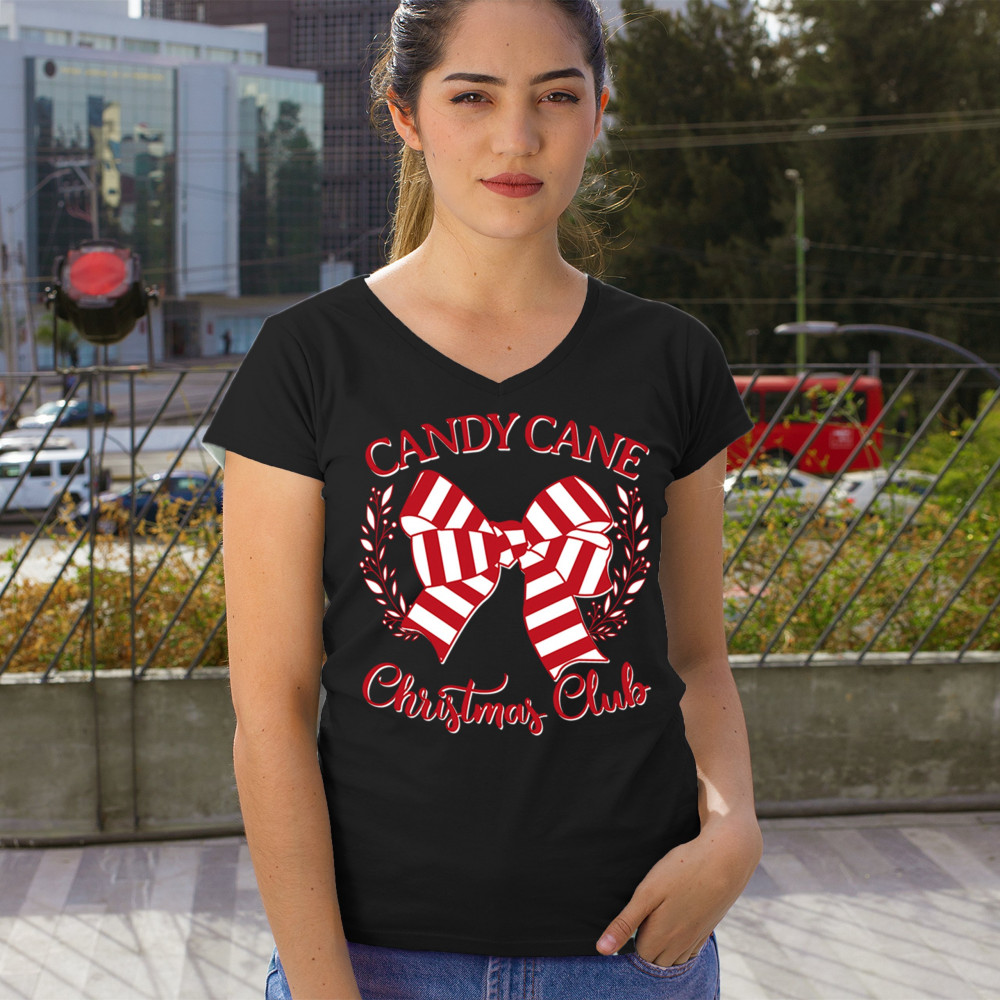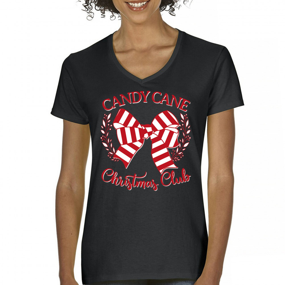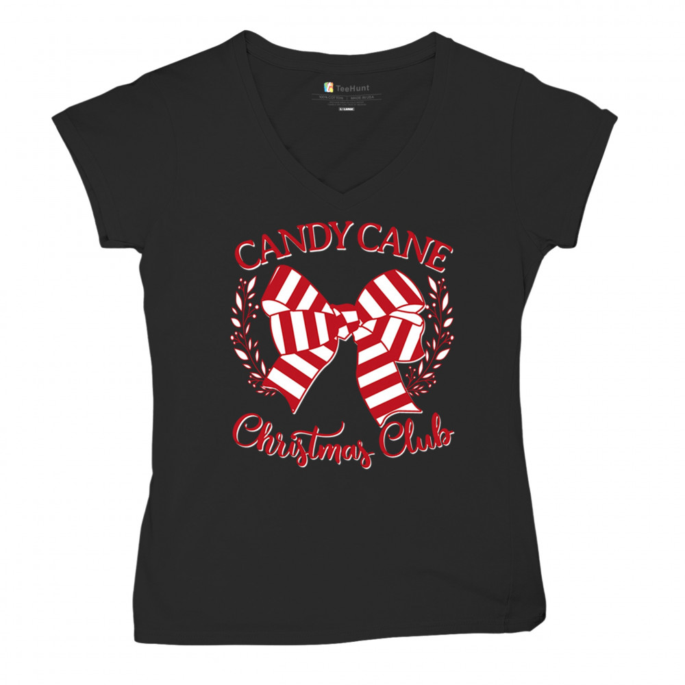 CANDY CANE CHRISTMAS CLUB women's v-neck t-shirt funny xmas holiday spirit tee black