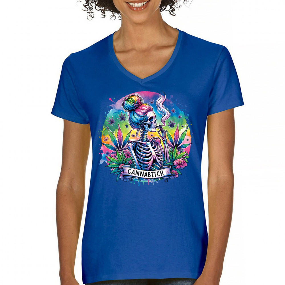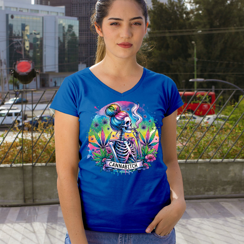 Unleash your inner weed queen with this CANNABITCH design—a psychedelic rainbow skeleton with major stoner girl energy. Dripping in neon colors, bold bud leaves, and fierce feminine vibes, it's a head-turning graphic for cannabis culture lovers, party girls, and unapologetically high women.