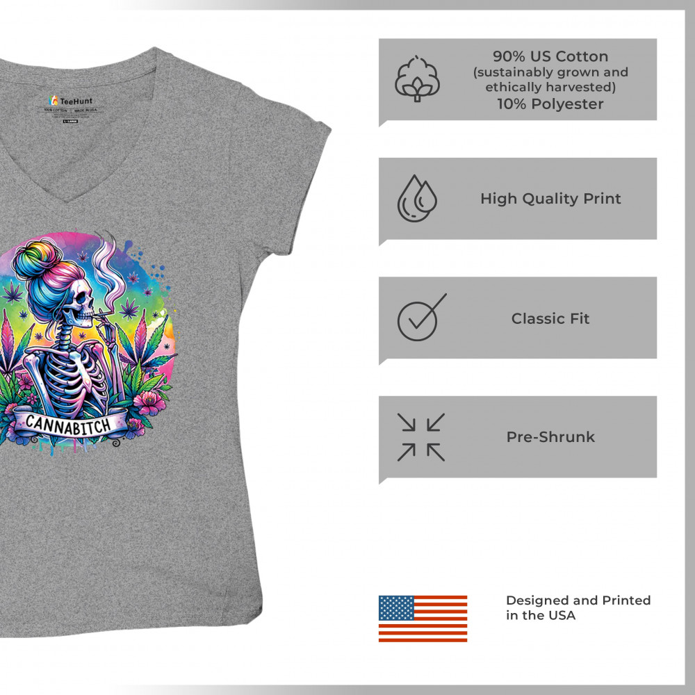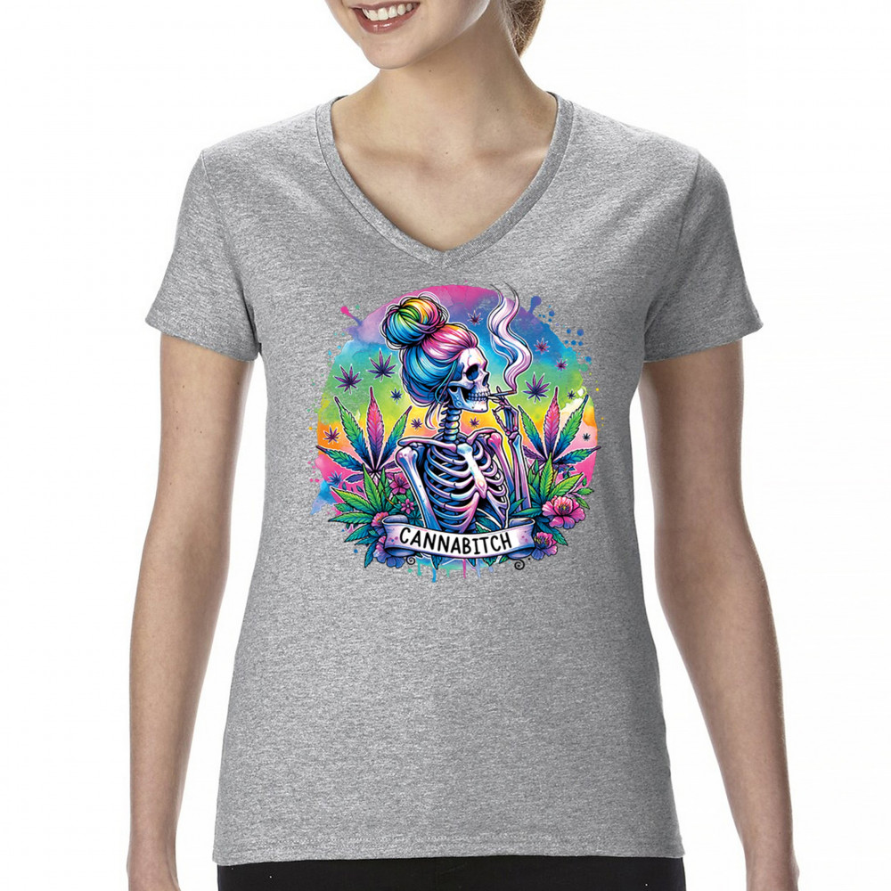 Unleash your inner weed queen with this CANNABITCH design—a psychedelic rainbow skeleton with major stoner girl energy. Dripping in neon colors, bold bud leaves, and fierce feminine vibes, it's a head-turning graphic for cannabis culture lovers, party girls, and unapologetically high women.