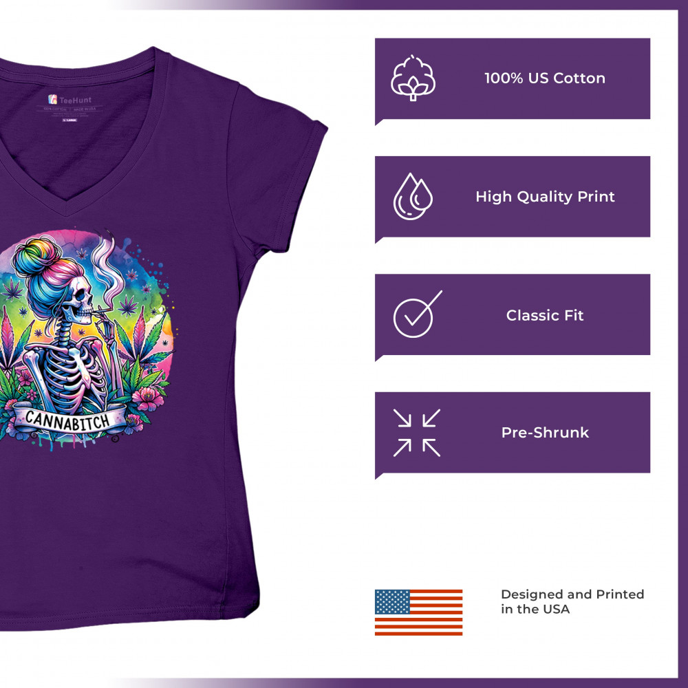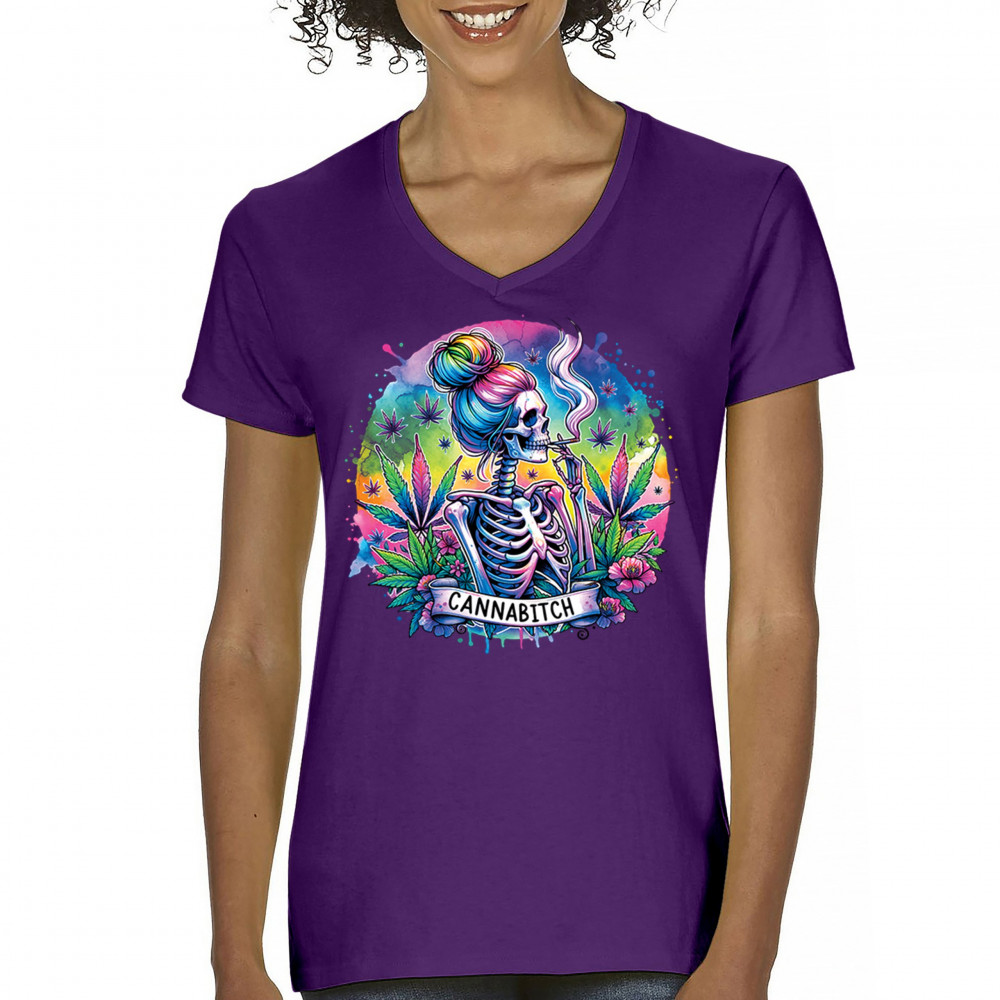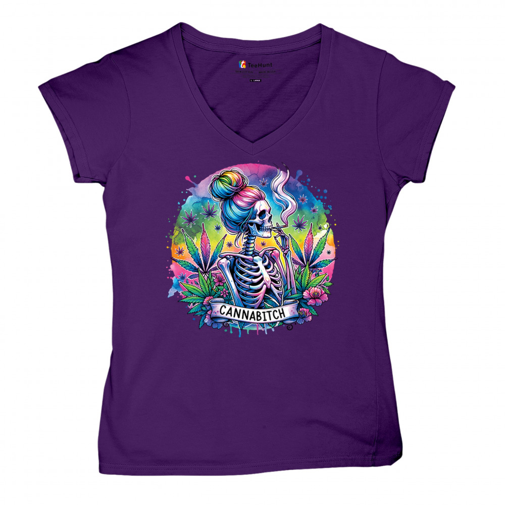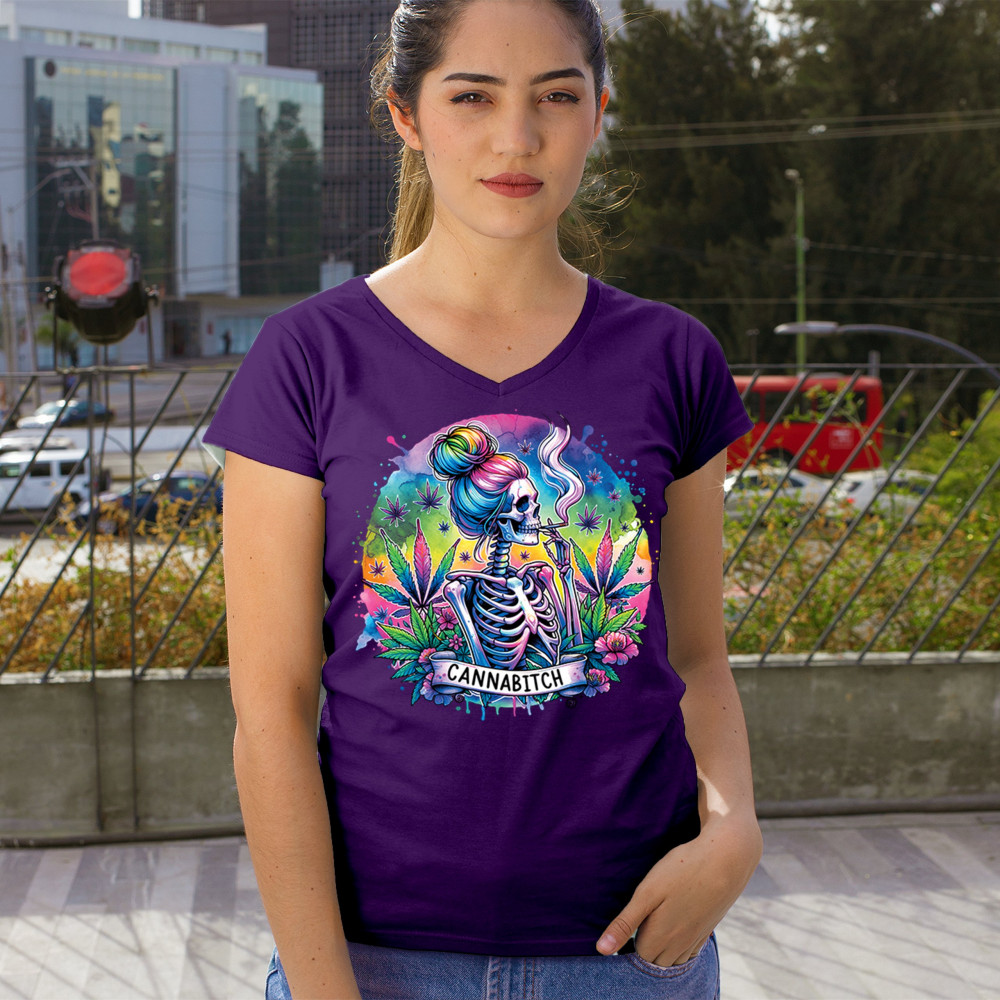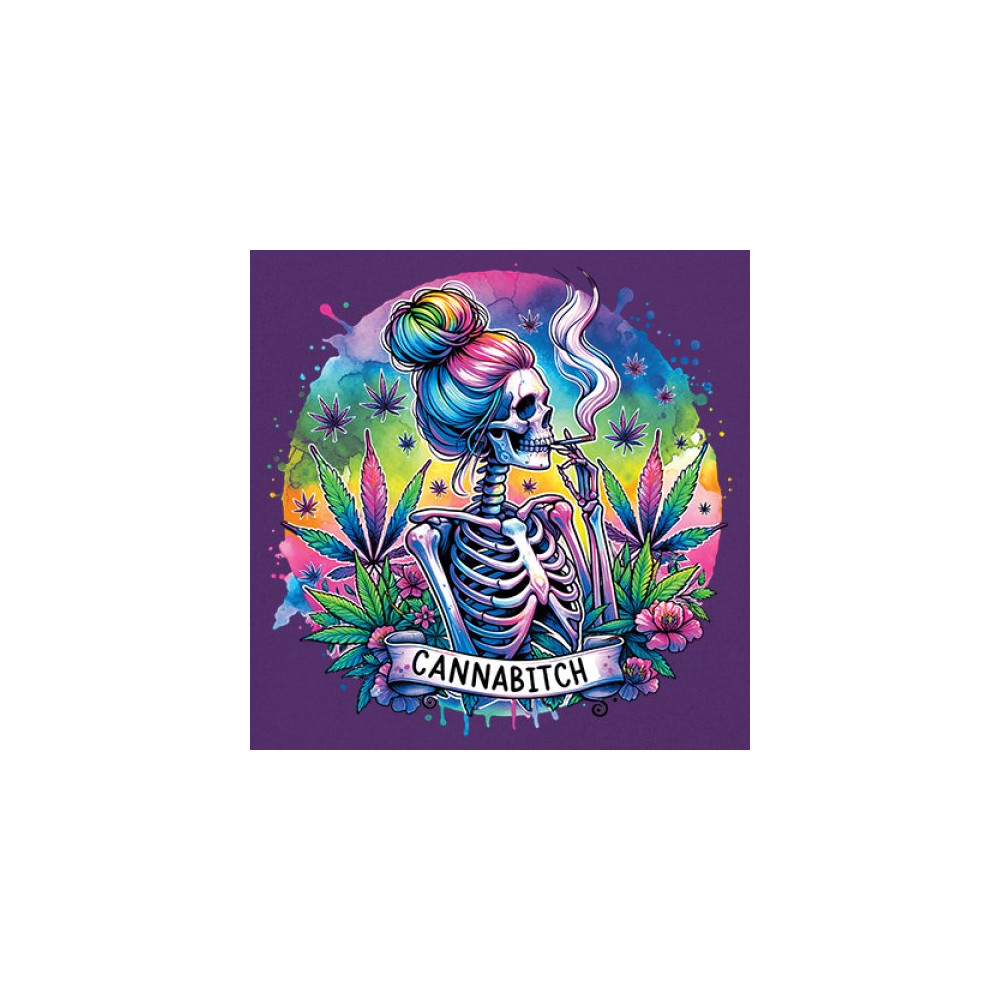 Unleash your inner weed queen with this CANNABITCH design—a psychedelic rainbow skeleton with major stoner girl energy. Dripping in neon colors, bold bud leaves, and fierce feminine vibes, it's a head-turning graphic for cannabis culture lovers, party girls, and unapologetically high women.
